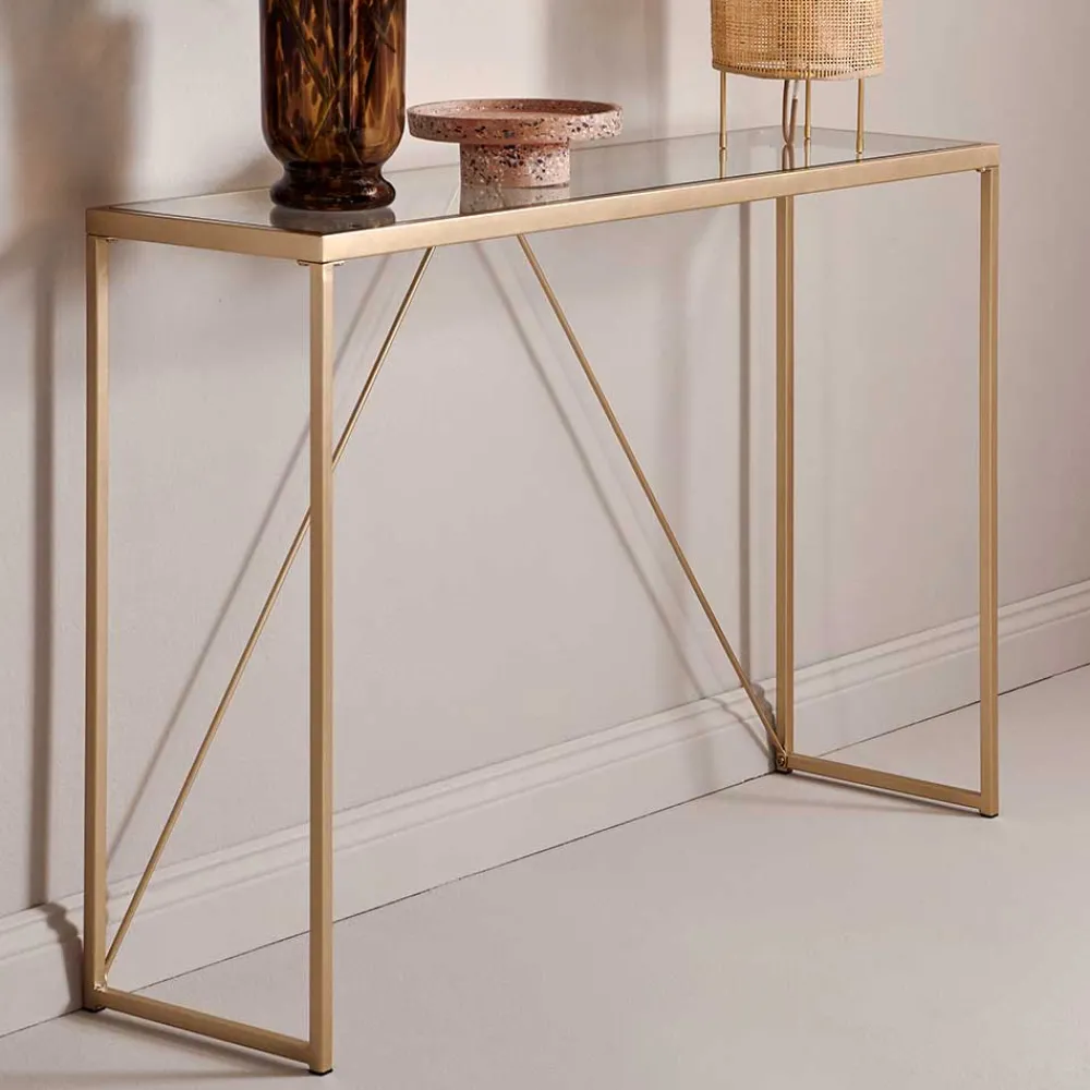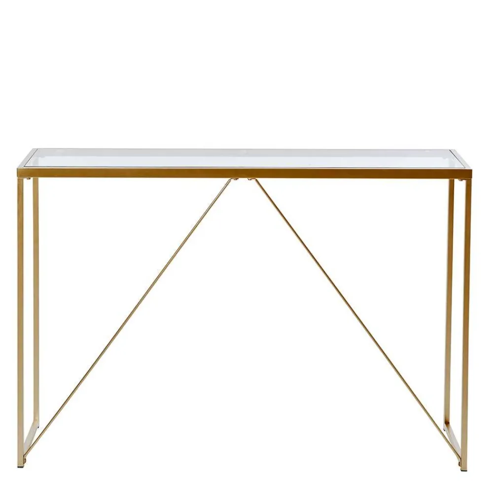 - Eleganter Konsolentisch in Goldfarben und Transparent