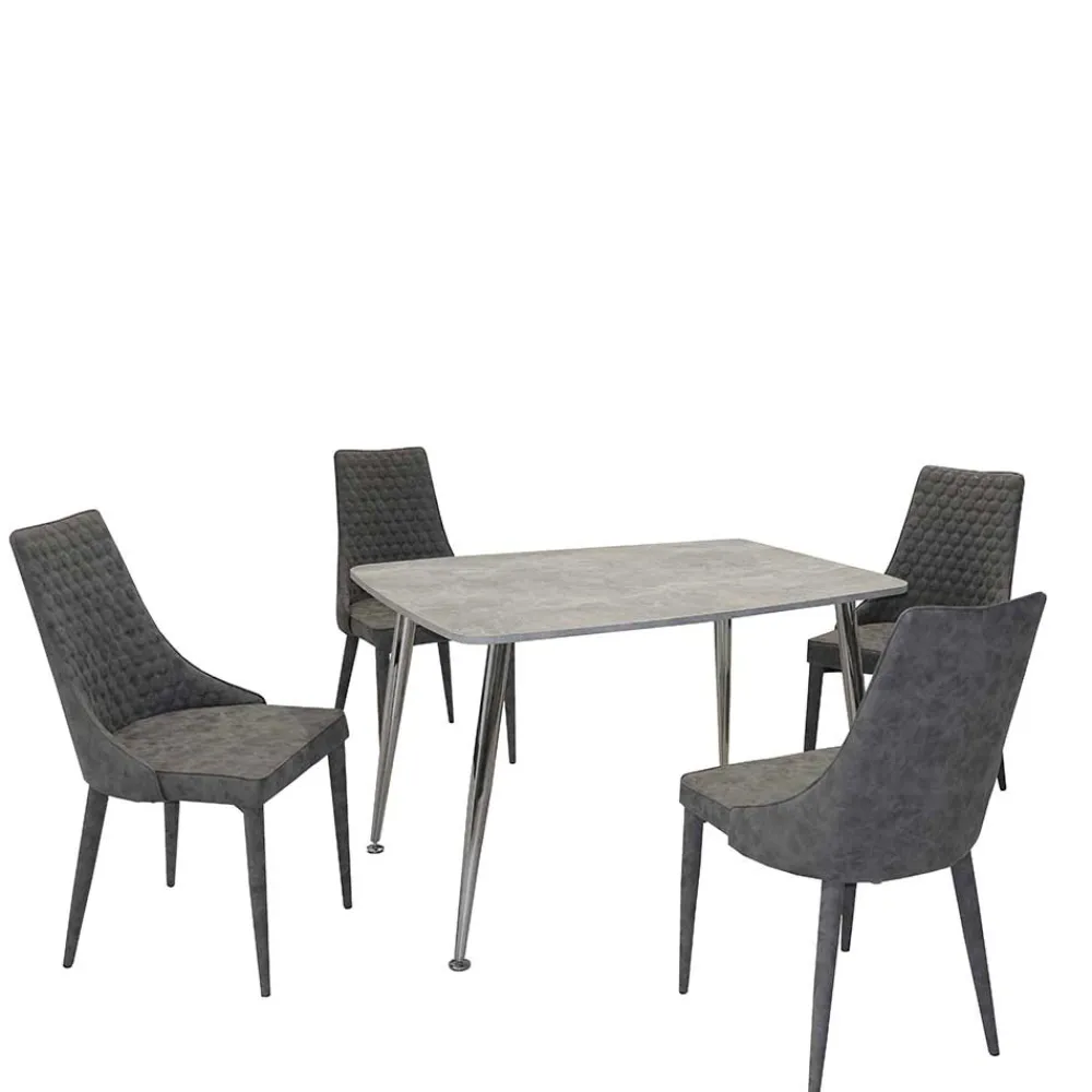 - Kompakte Esstischgruppe in Dunkelgrau, Chromfarben und Beton Optik