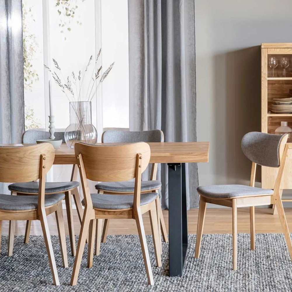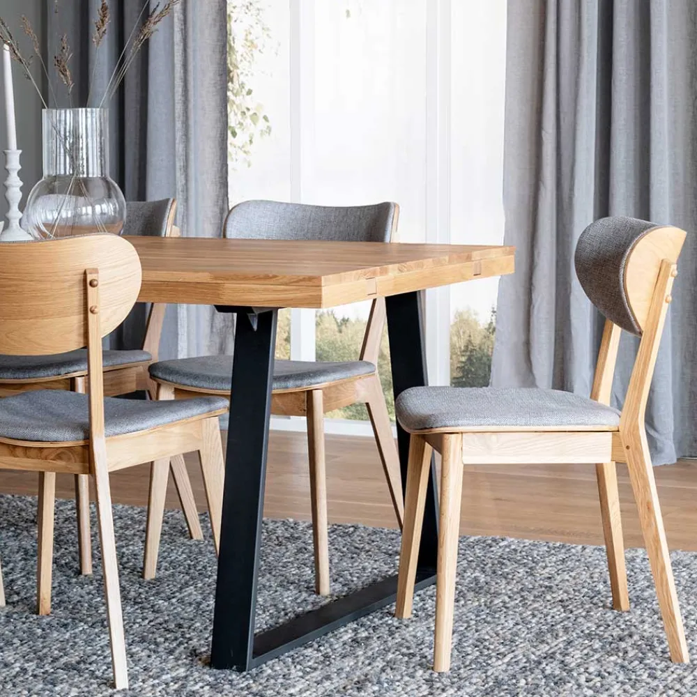 - Aus Massivholz Eiche, Webstoff und Metall gefertigt