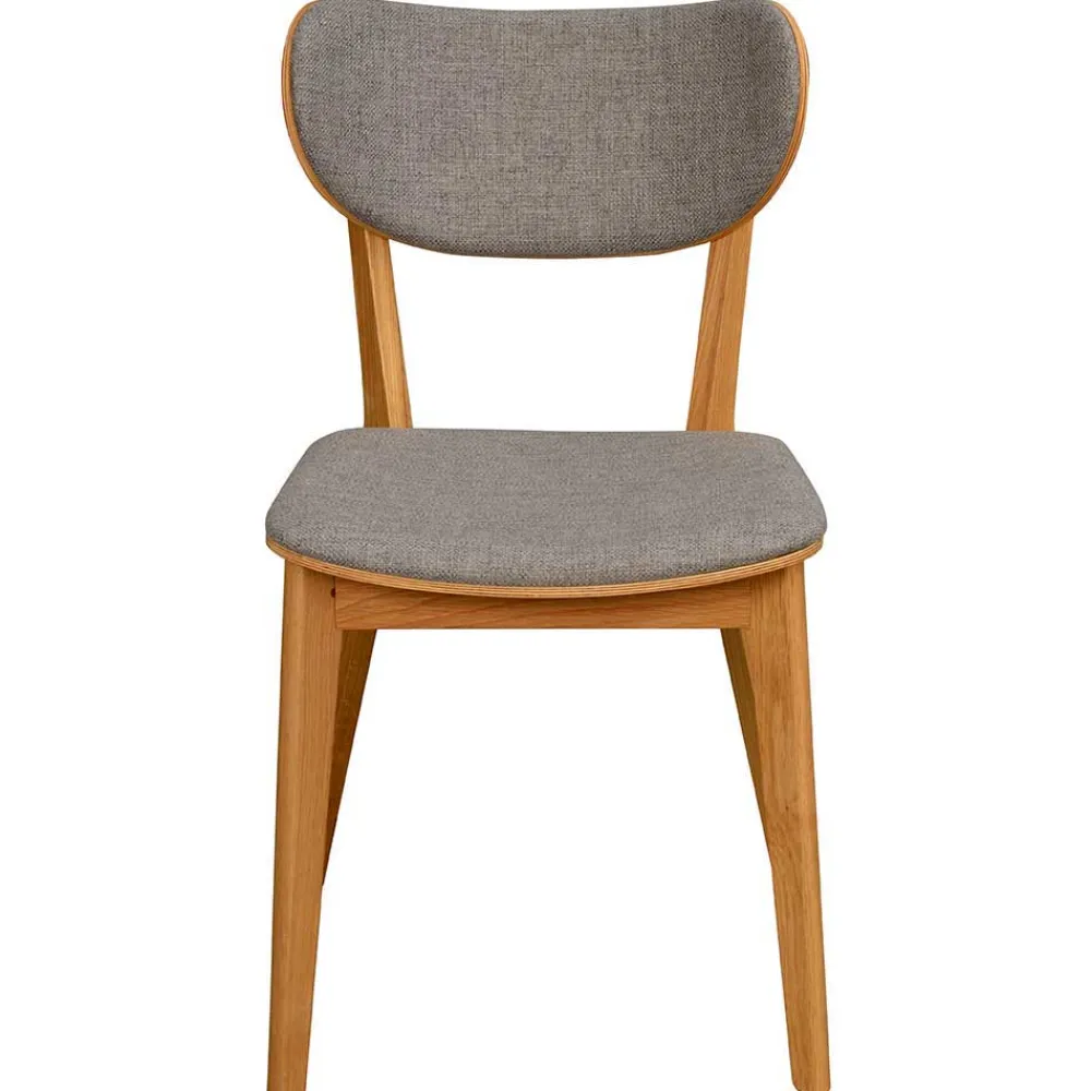 - Leicht geschwungene Lehne mit abgerundeten Ecken am oberen Ende des Stuhls