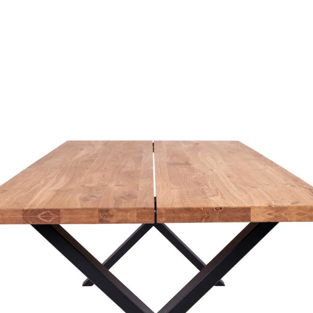 - Tischplatte aus massivem Eichenholz mit lebhafter Maserung, mittig geteilt