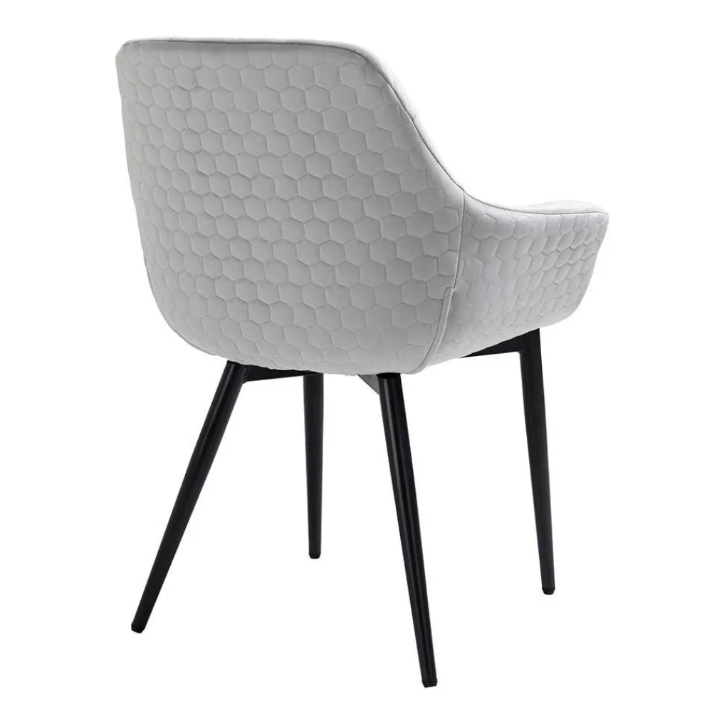 Nicht nur stilistisch, auch funktional wissen die vier Stühle zu überzeugen. Komfort entsteht durch die hochwertige Schaumstoffpolsterung, die für ein angenehmes Sitzgefühl sorgt – selbst bei langen Abenden am Tisch. Ergonomisch geformte Rückenlehnen unterstützen den Rücken optimal und sorgen für eine entspannte Haltung. Außen sorgt eine elegante Wabensteppung für einen modernen Look, während innen raffinierte Ziernähte mit legerem Faltenwurf für eine wohnliche Note stehen – kleine Details mit großer Wirkung.