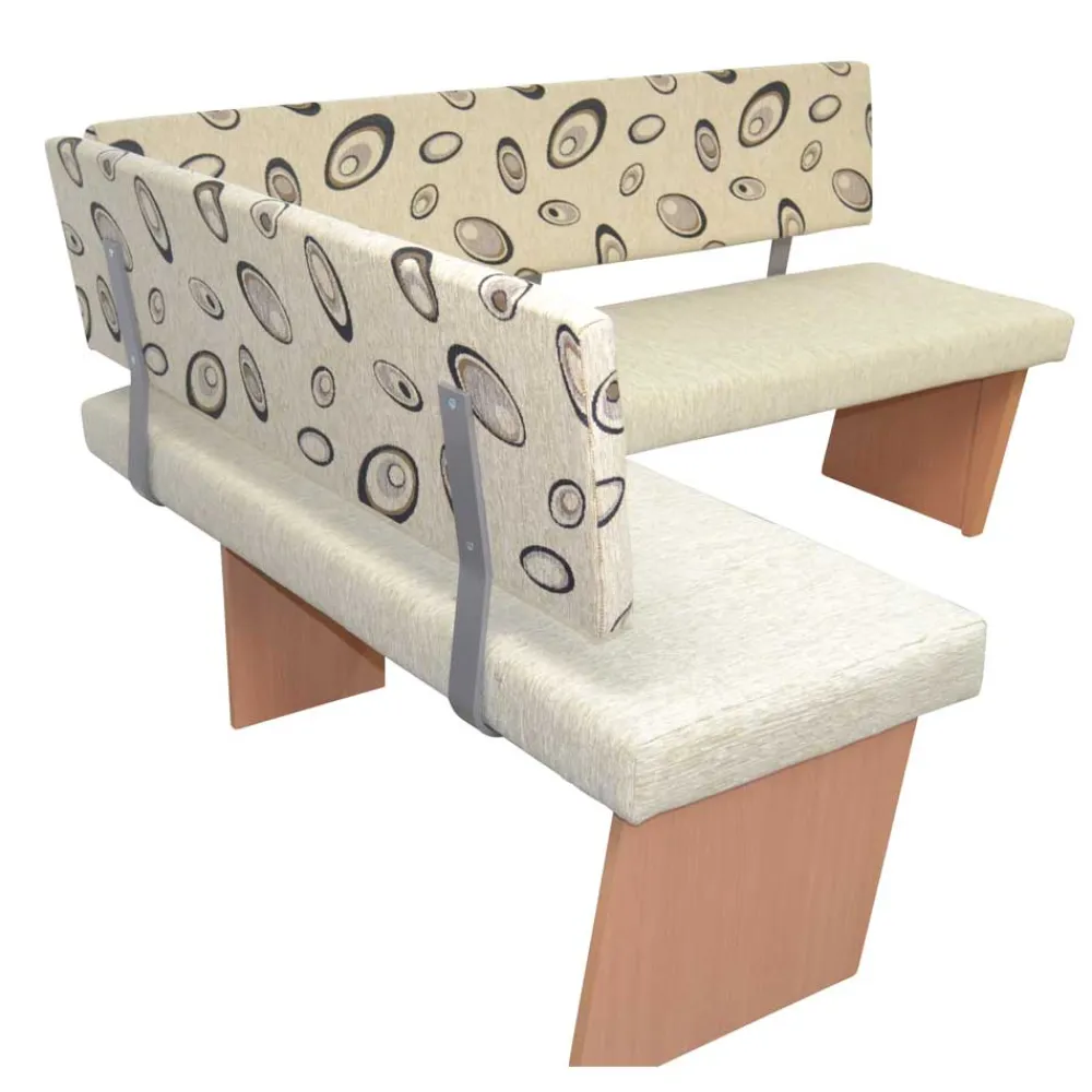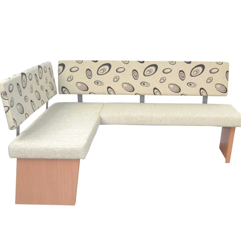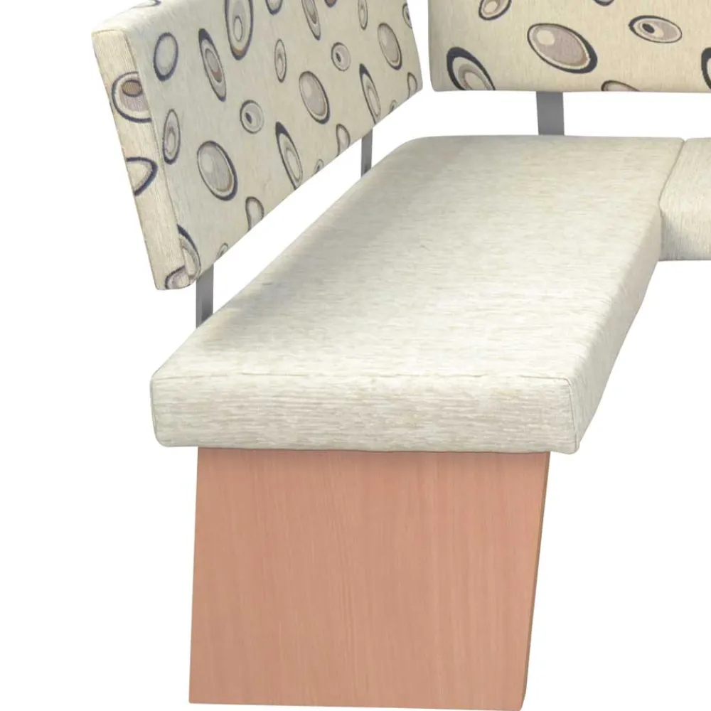 Die Eckbank wurde aus robusten Spanplatten gefertigt und mit einem pflegeleichten Webstoff bezogen. Dieser besteht aus 49 % Polyamid, 33 % Polyester und 18 % Viskose und ist mit einem hübschen Muster versehen. Die gemütliche Schaumstoffpolsterung und die bequeme Rückenlehne sorgen für ein angenehmes Sitzgefühl, während das standsichere Wangengestell in Holzoptik Buche Natur für Stabilität und Langlebigkeit steht.
