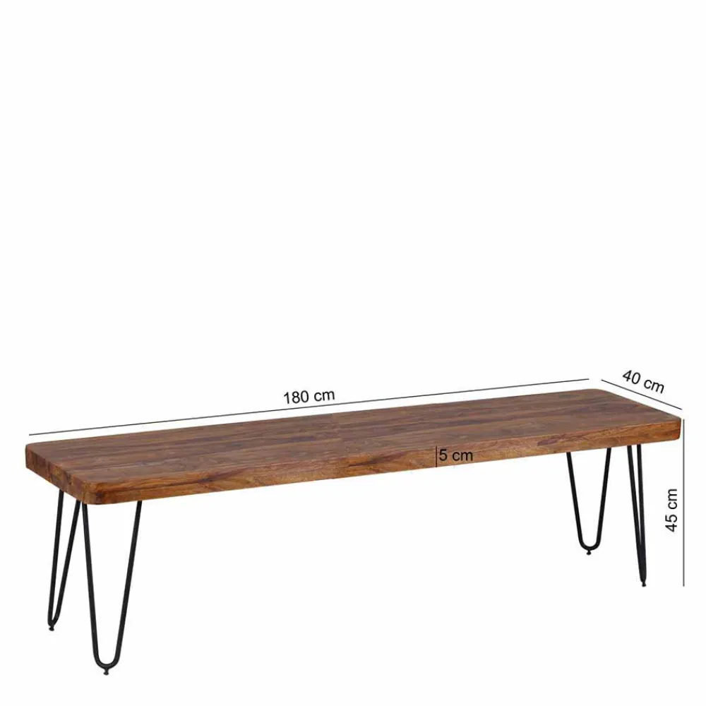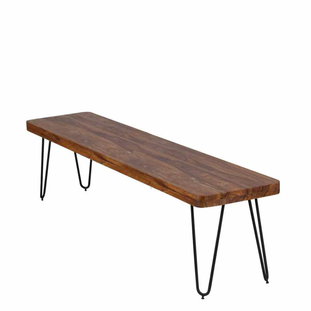 Die Sitzfläche aus massivem Sheeshamholz begeistert durch ihre besondere Härte, Langlebigkeit und ihre faszinierende Maserung. Jeder Blick auf die klar lackierte Oberfläche offenbart neue Details des natürlichen Holzbildes – ein echtes Unikat für Ihr Zuhause. Dank der klaren Lackierung ist die Oberfläche nicht nur geschützt, sondern auch pflegeleicht und dauerhaft schön. Die angenehm abgerundeten Kanten unterstreichen die hochwertige Verarbeitung und sorgen für ein komfortables Sitzgefühl.