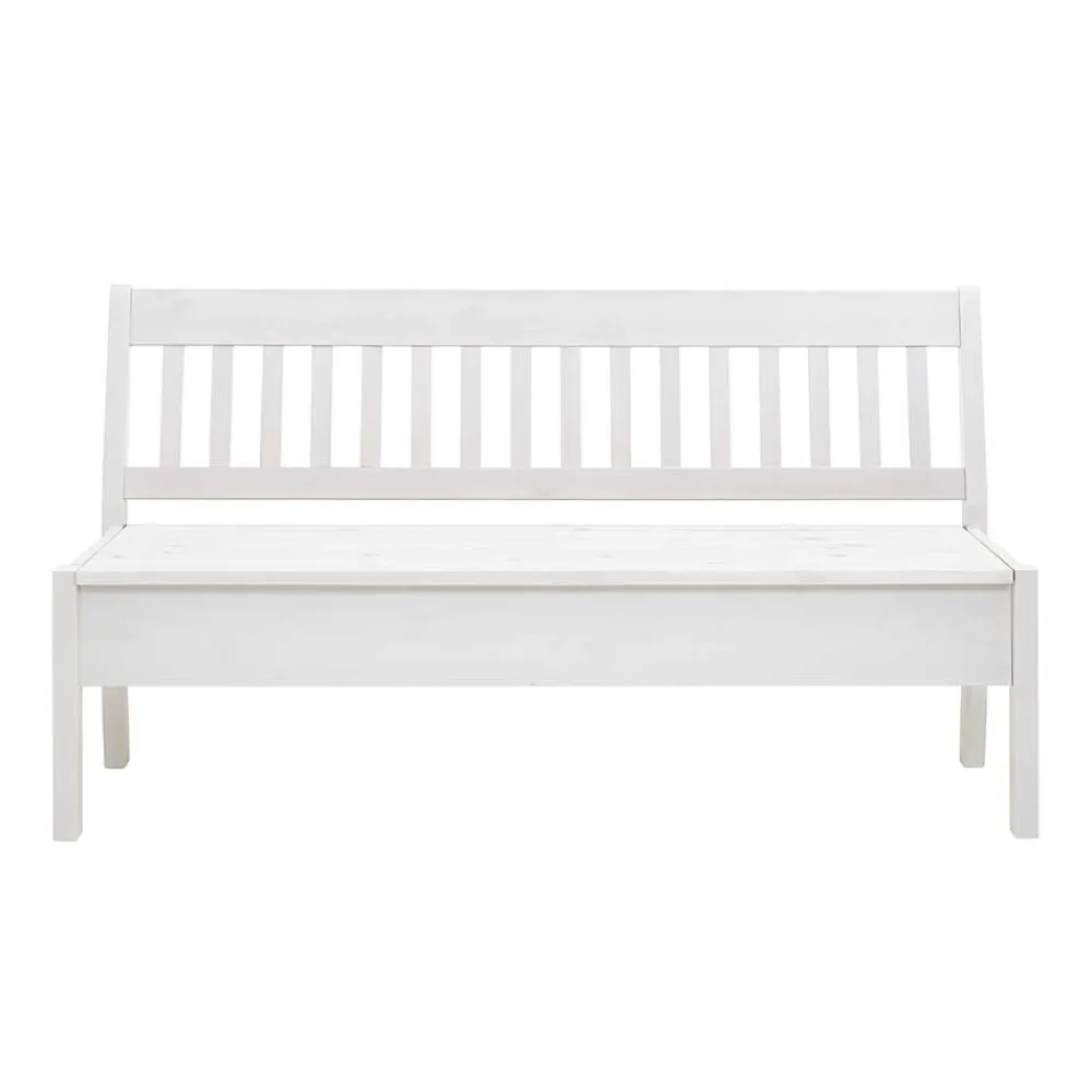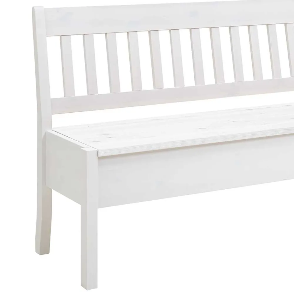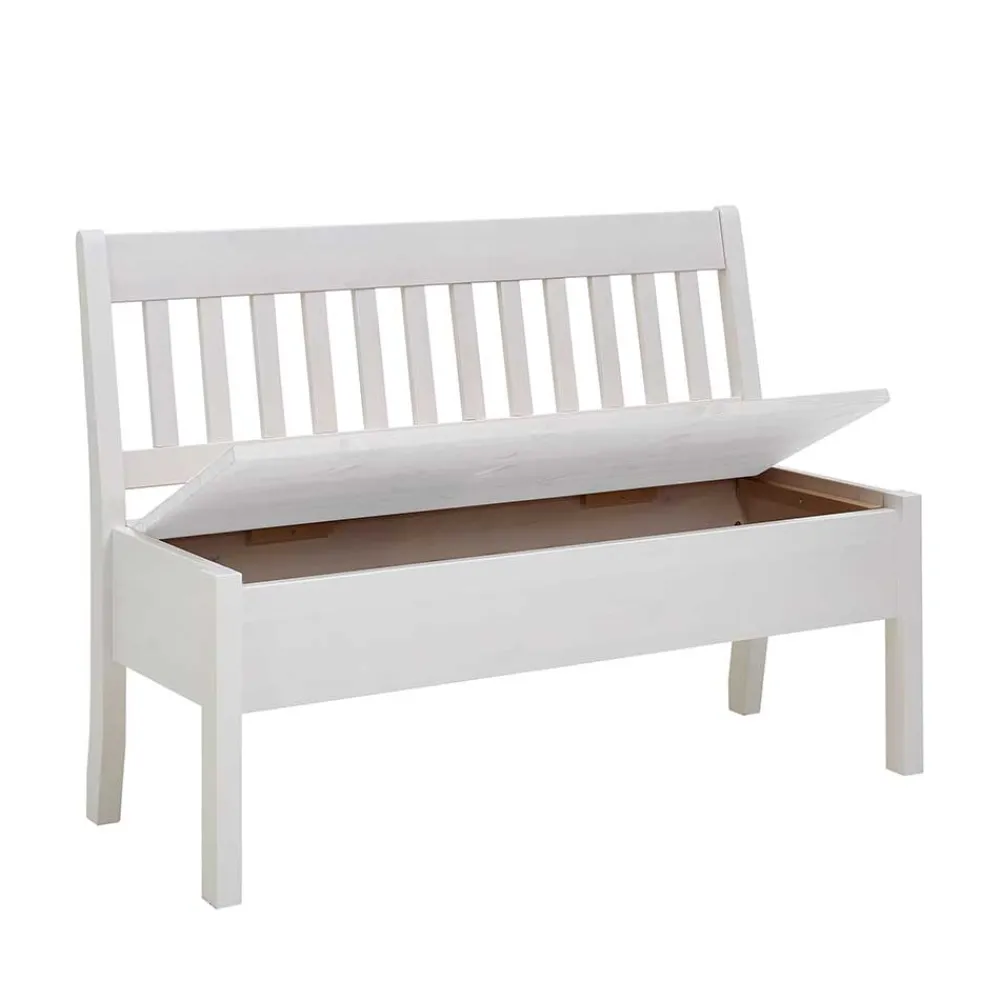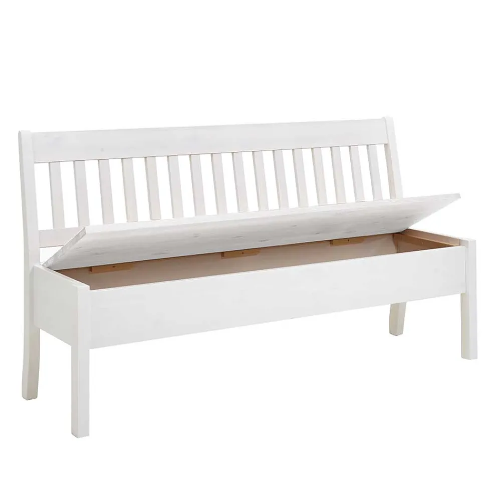 Praktisch und formschön zugleich: Unter der aufklappbaren Sitzfläche verbirgt sich eine großzügige Truhe, die viel Platz für Kissen, Decken oder Alltagsutensilien bietet. So schaffen Sie im Handumdrehen Ordnung und haben dennoch alles griffbereit. Die bequeme Rückenlehne mit vertikal angeordneten Leisten bietet stabilen Halt und lädt zum längeren Verweilen ein – ideal für gemeinsame Mahlzeiten, Kaffeepausen oder entspannte Gespräche.