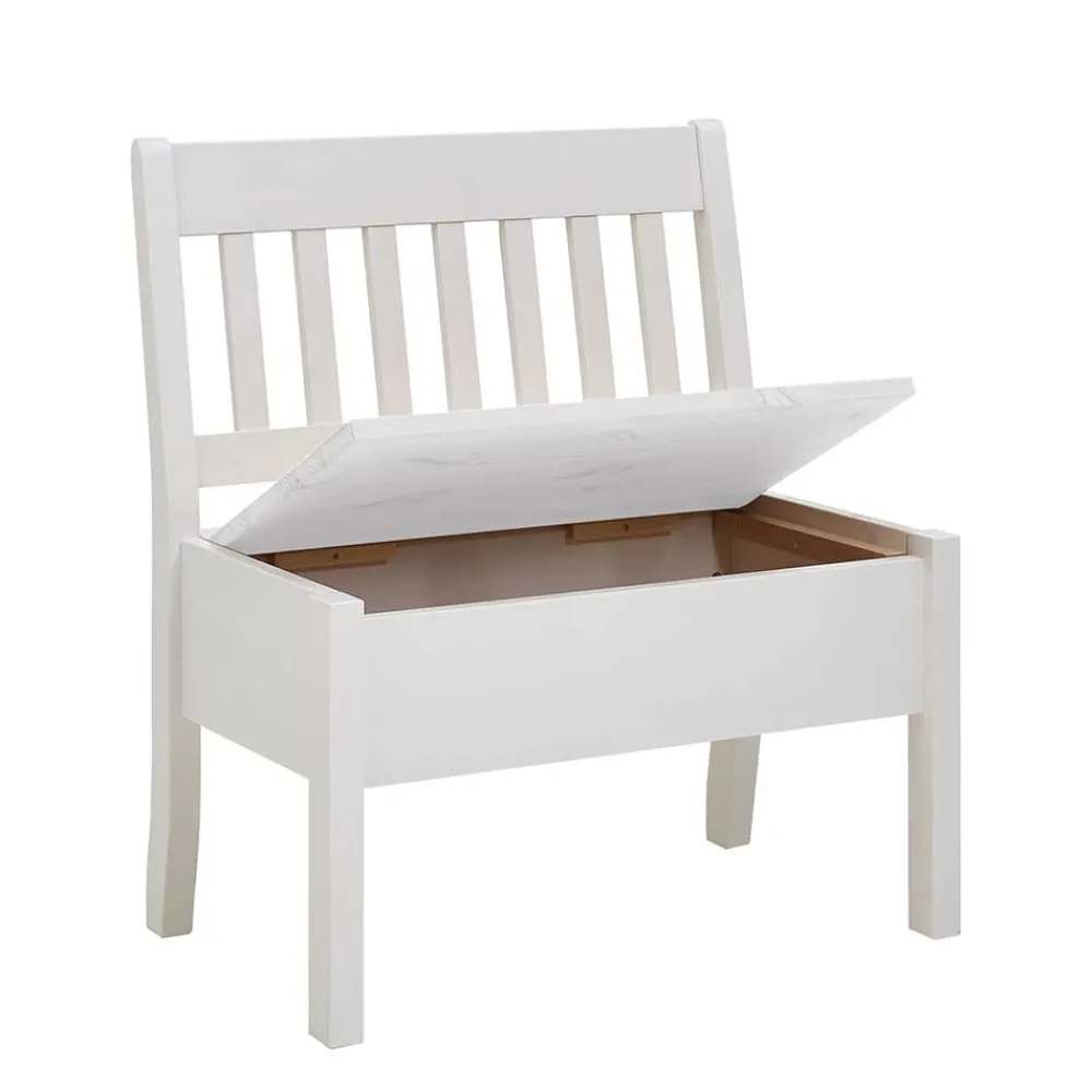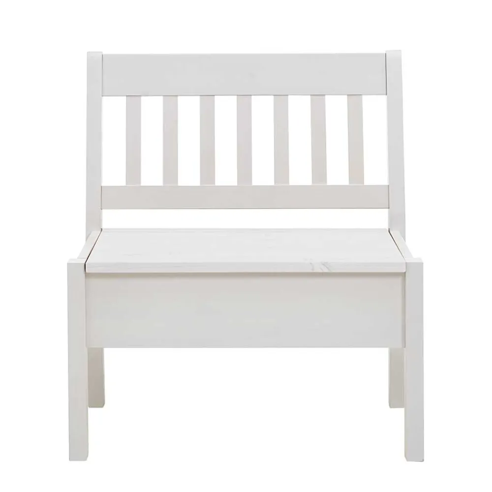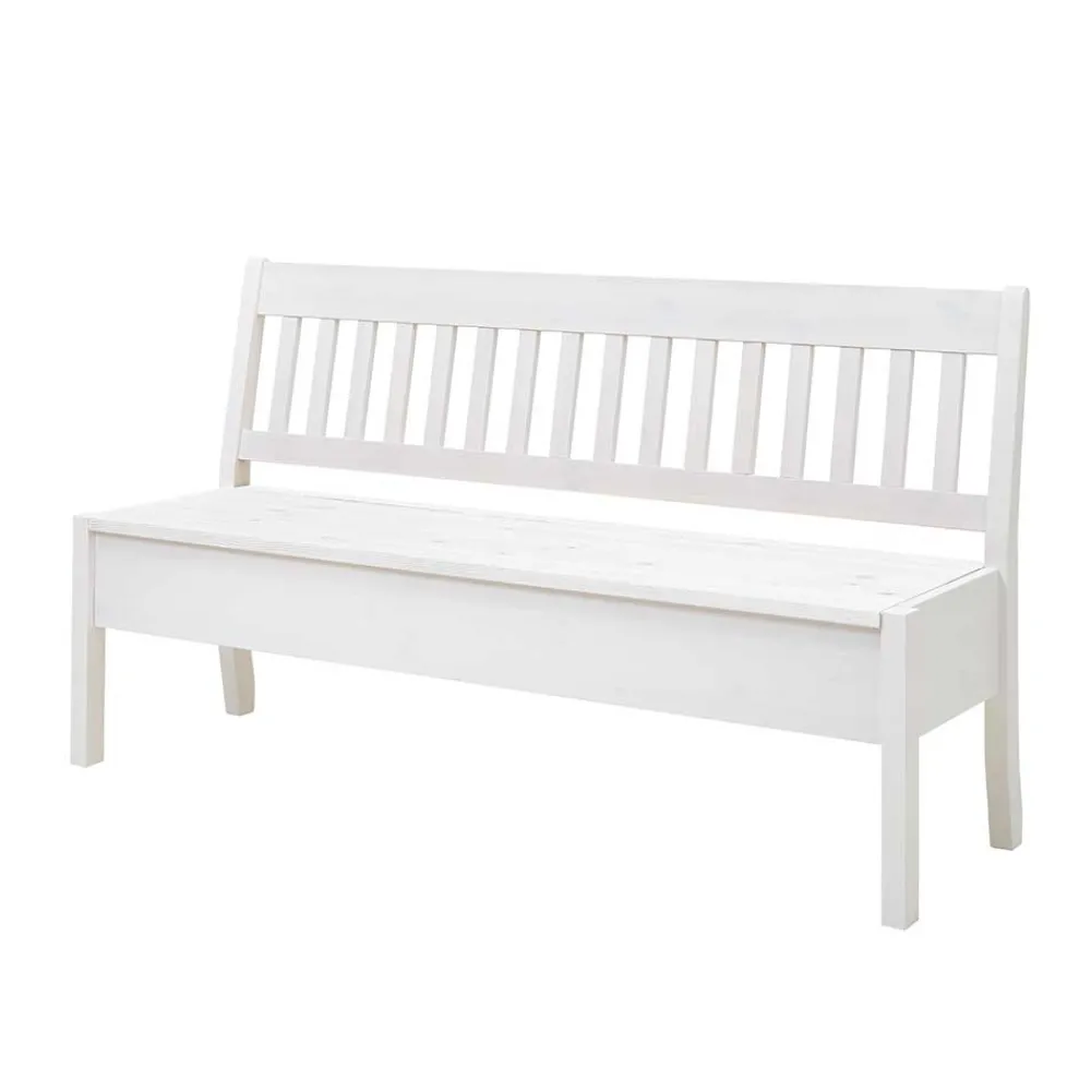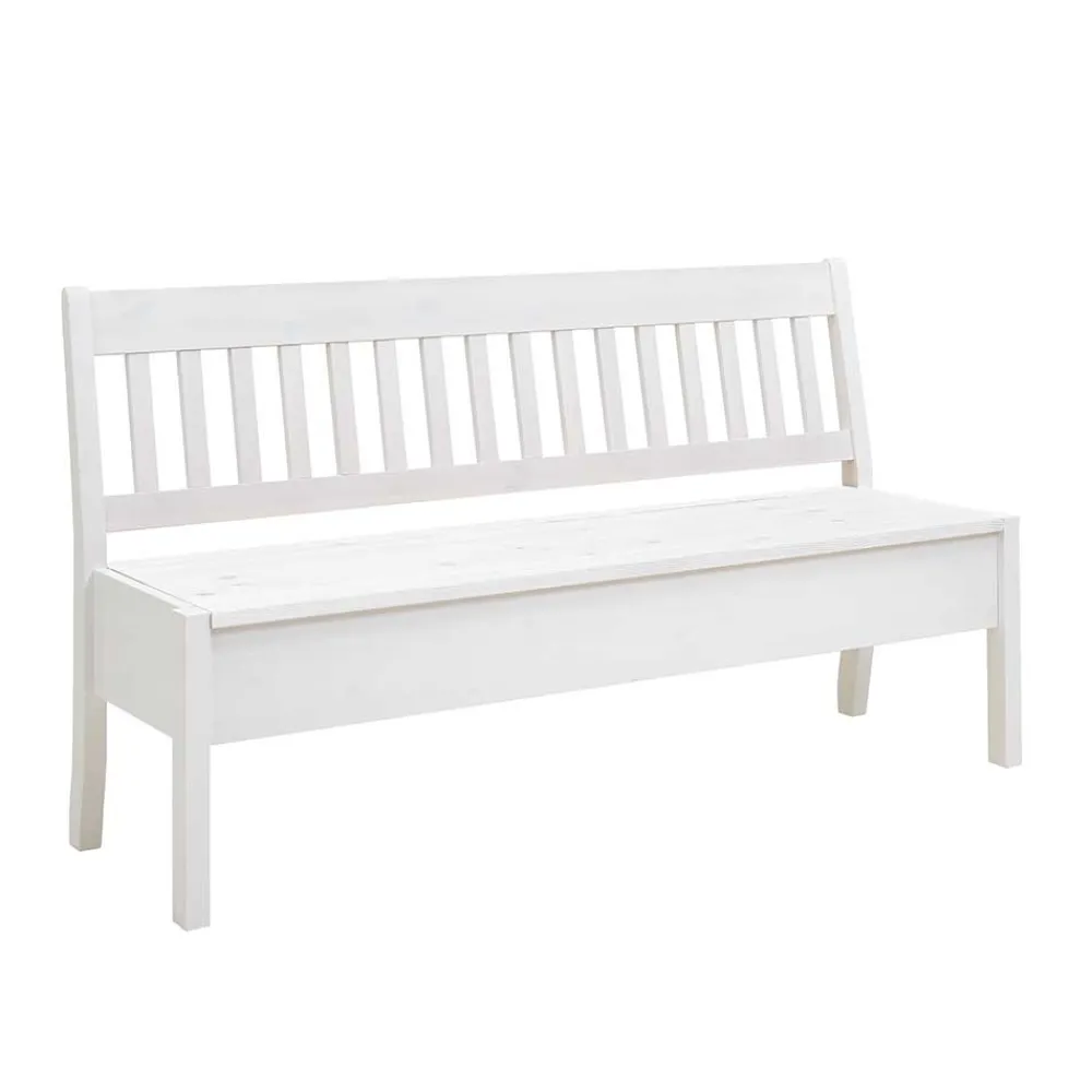 Praktisch und formschön zugleich: Unter der aufklappbaren Sitzfläche verbirgt sich eine großzügige Truhe, die viel Platz für Kissen, Decken oder Alltagsutensilien bietet. So schaffen Sie im Handumdrehen Ordnung und haben dennoch alles griffbereit. Die bequeme Rückenlehne mit vertikal angeordneten Leisten bietet stabilen Halt und lädt zum längeren Verweilen ein – ideal für gemeinsame Mahlzeiten, Kaffeepausen oder entspannte Gespräche.