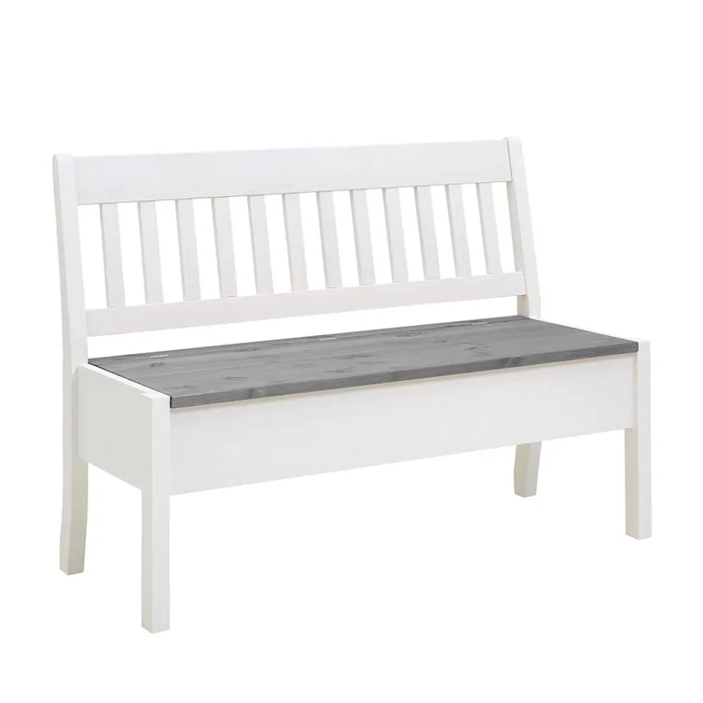 - Harmonische Sitzbank in Kiefer Weiß und Grau