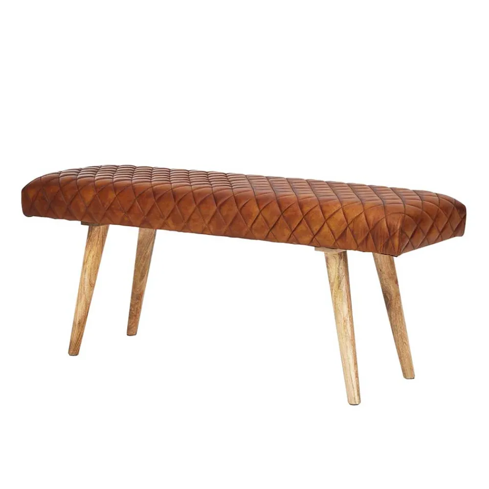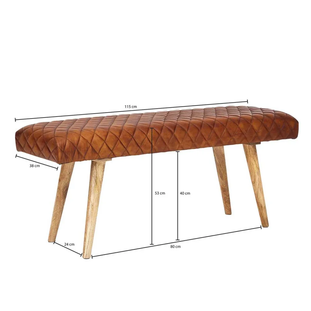 - Klasse Sitzbank in Cognac Braun und Mangoholz Naturfarben