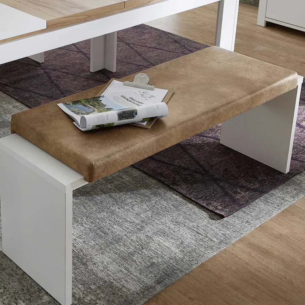 Mit der Esstisch Bank Connassa zieht modernes Design in Ihr Zuhause ein. Die klare Linienführung, kombiniert mit einer trendbewussten Farbkombination aus Weiß supermatt und hellem Braun, verleiht jedem Wohn- oder Essbereich ein stilvolles, urbanes Ambiente. Connassa ist mehr als nur eine Sitzbank – sie ist Ausdruck von Geschmack, Funktionalität und einem Lebensstil, der modernes Wohnen mit Gemütlichkeit verbindet.