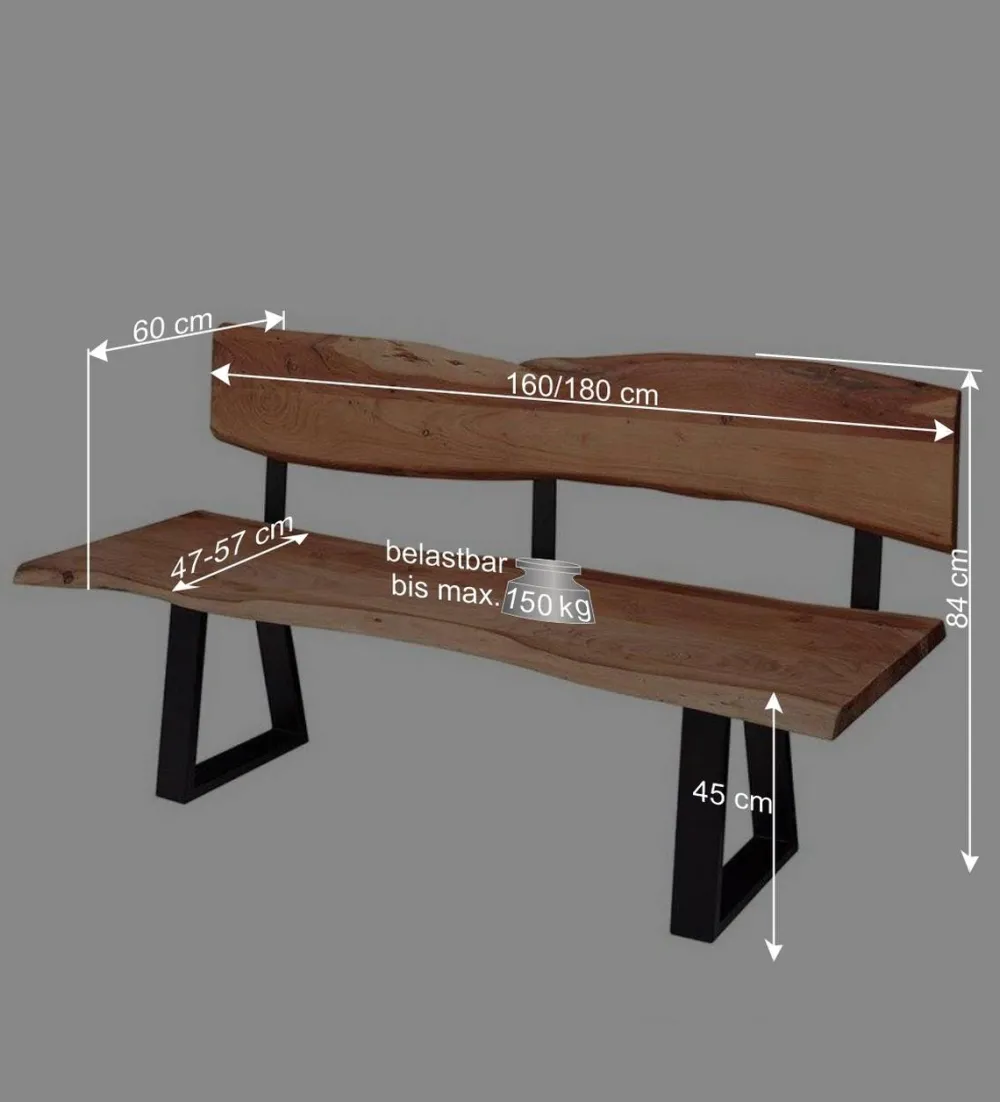 Wohnen Küchenbänke|Esszimmerbänke*Wohnraum Baumkanten Bank mit Rückenlehne – Lussina
