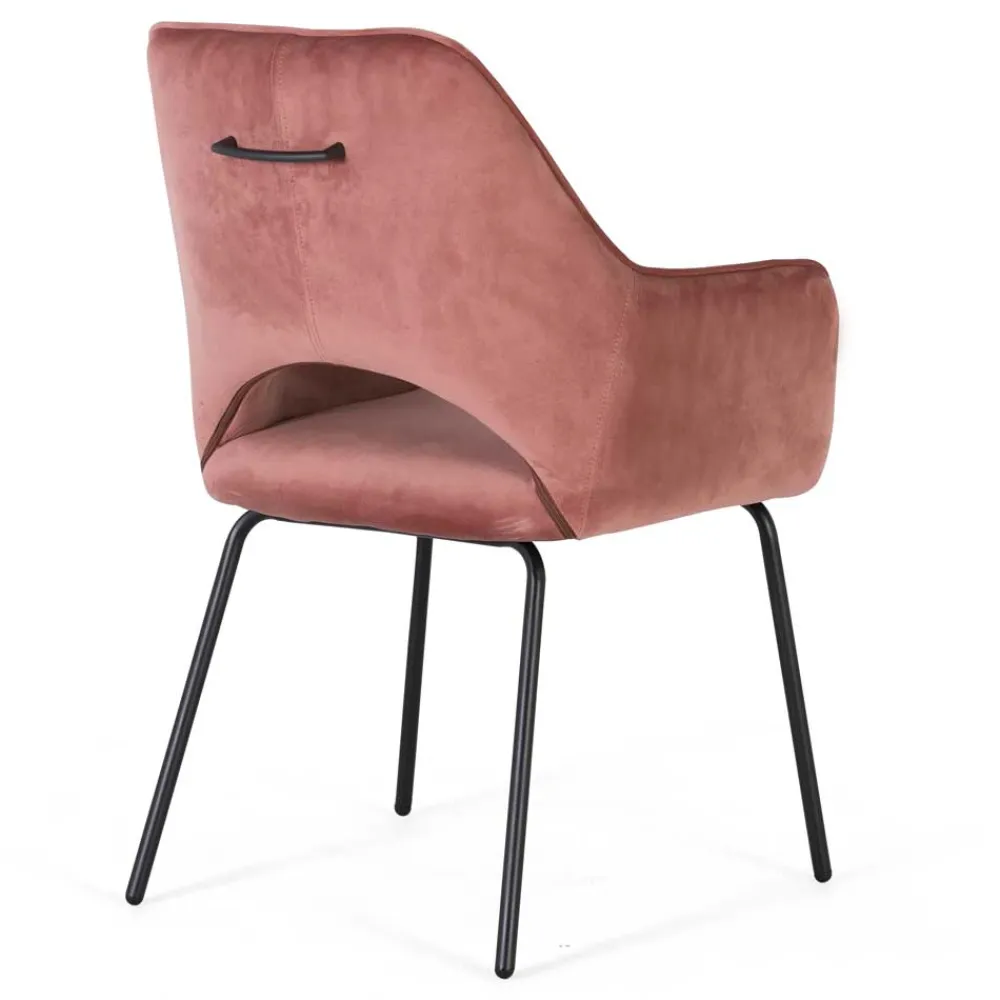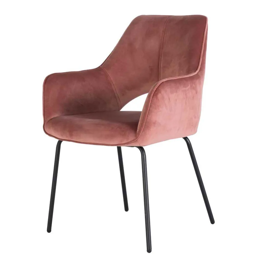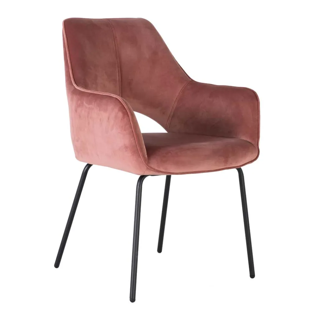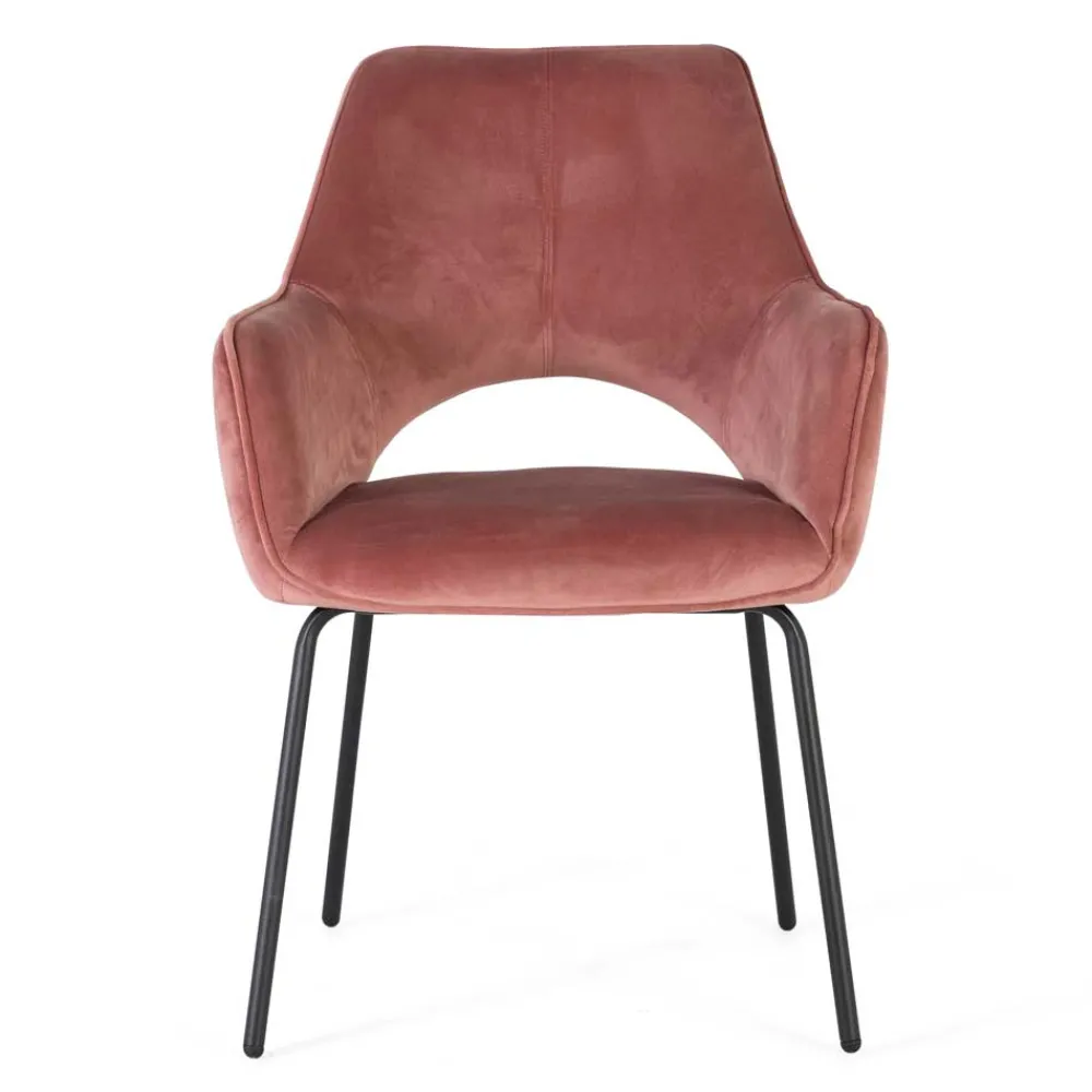 Der Armlehnenstuhl „Flawia“ vereint ansprechendes Design mit außergewöhnlichem Komfort. In den Farben Altrosa und Schwarz gehalten, ist dieser Stuhl ein echtes Highlight in Ihrem Zuhause. Der Samtbezug sorgt für ein luxuriöses Gefühl, während das schwarze Metallgestell eine zeitgemäße Note verleiht. Egal, ob im Esszimmer, am Schreibtisch oder als zusätzlicher Komfort in der Lounge-Ecke – dieser Stuhl passt sich mühelos Ihrem Raumkonzept an und setzt modische Akzente.