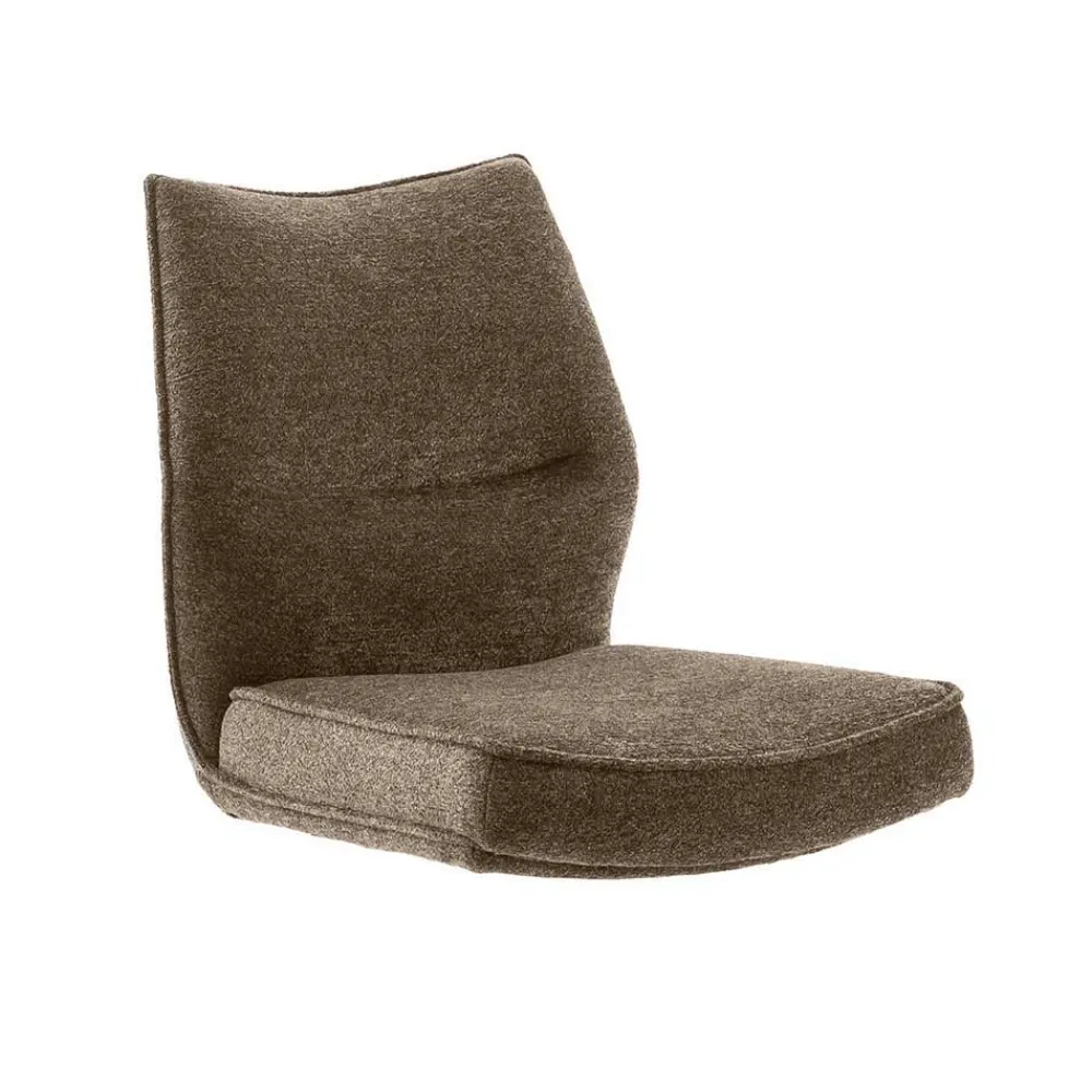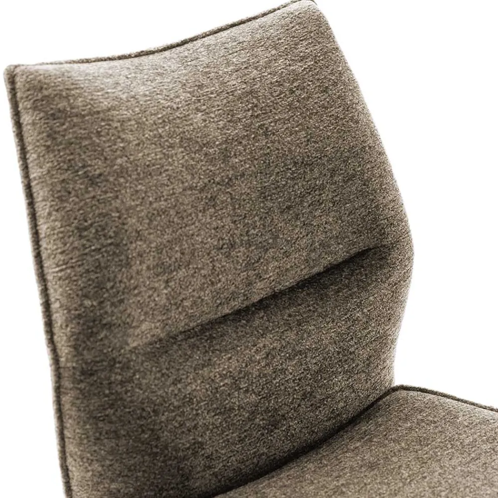 Der Küchenstuhl „Manore“ vereint zeitlose Eleganz mit durchdachter Funktionalität. Sein strukturierter Chenillegewebe-Bezug in Braun schafft eine warme Atmosphäre, während das mattschwarz lackierte Metallgestell mit Schwingfunktion für eine moderne Optik und zuverlässige Stabilität sorgt.