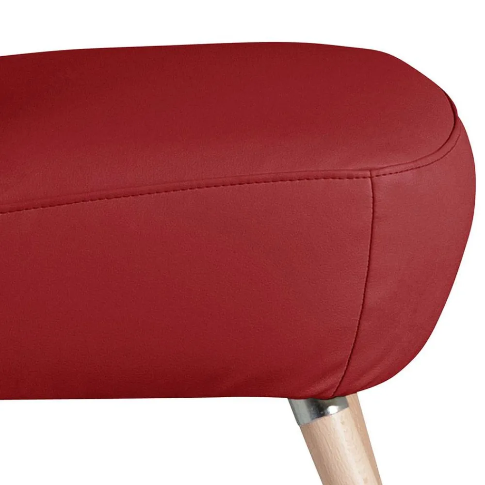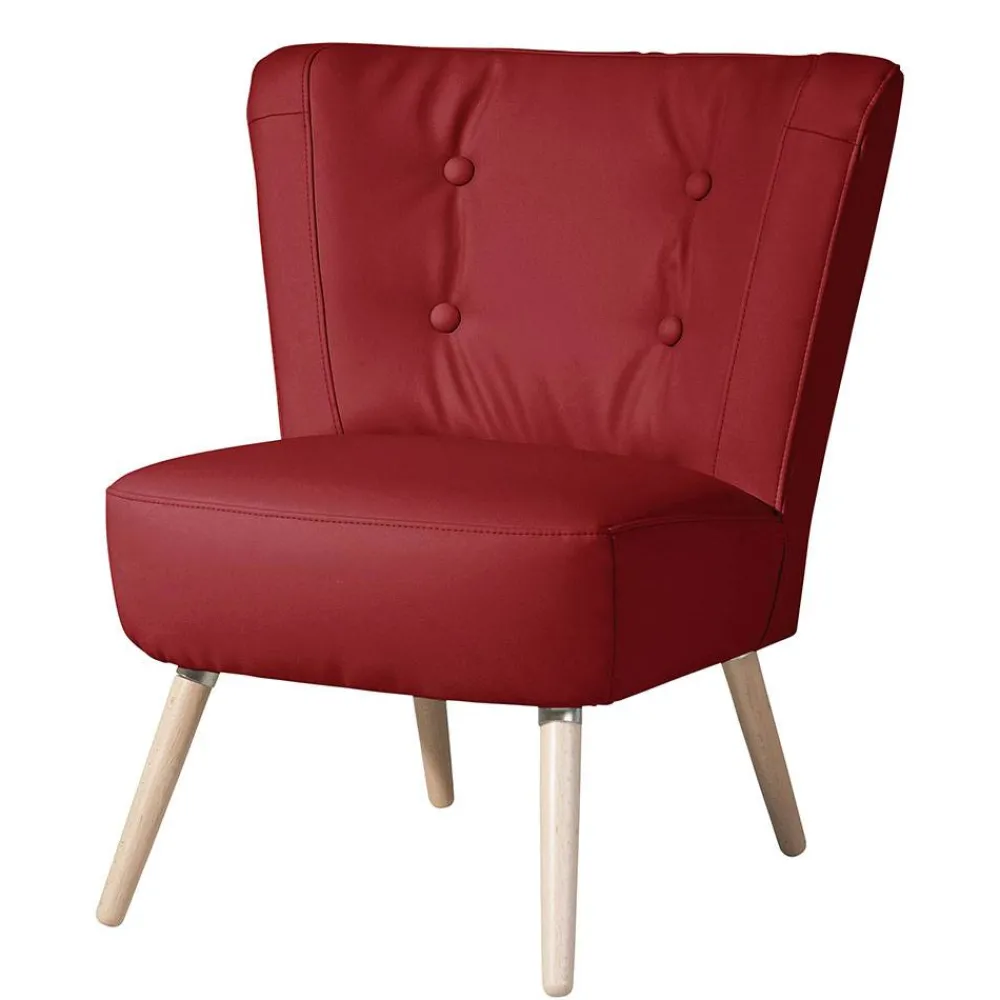 Gefertigt in Deutschland und nach höchsten Qualitätsstandards verarbeitet, bietet dieser Cocktailsessel eine ausgezeichnete Verarbeitung und Materialien, die für langlebigen Komfort sorgen. Der Bezug aus robustem Kunstleder in elegantem Rot besteht aus 90 % Polyester, 6 % Baumwolle und 4 % Viskose und ist für eine strapazierfähige Nutzung konzipiert. Mit einer Scheuertouren-Beständigkeit von 45.000 Martindale ist der Bezug besonders widerstandsfähig gegen Abrieb, was ihn zum idealen Begleiter für häufig genutzte Räume wie die Hausbar, Küche oder das Wohnzimmer macht.