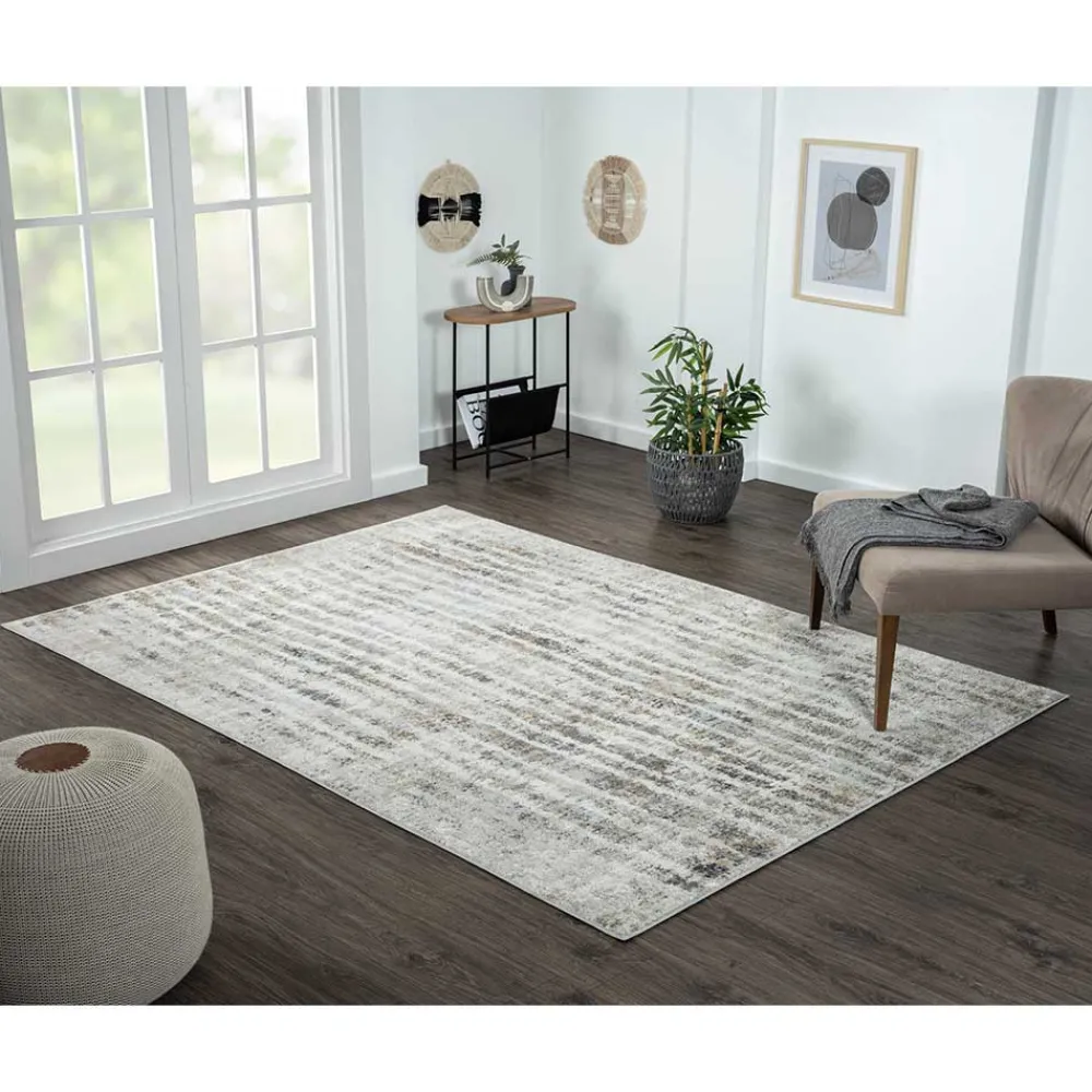 Der Kurzflor Teppich „Lusanne“ bringt mit seiner eleganten Kombination aus Hellgrau und Cremefarben eine ruhige, moderne Note in Ihre Wohnräume. Das dezente Streifenmuster verleiht dem Teppich eine feine Dynamik, ohne sich in den Vordergrund zu drängen – ideal für alle, die auf klare Linien und zeitlose Gestaltung setzen. Ob im Wohnzimmer, Schlafzimmer oder Homeoffice: „Lusanne“ fügt sich harmonisch in verschiedenste Einrichtungsstile ein.