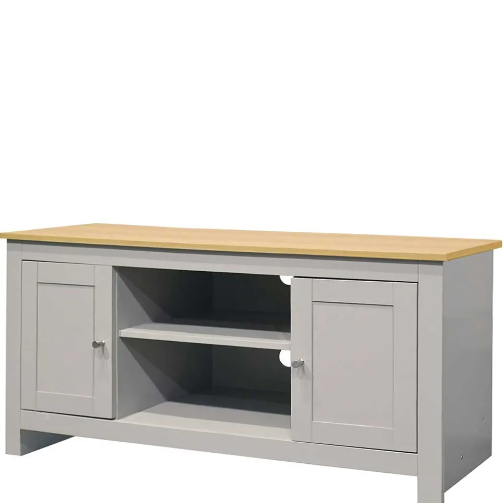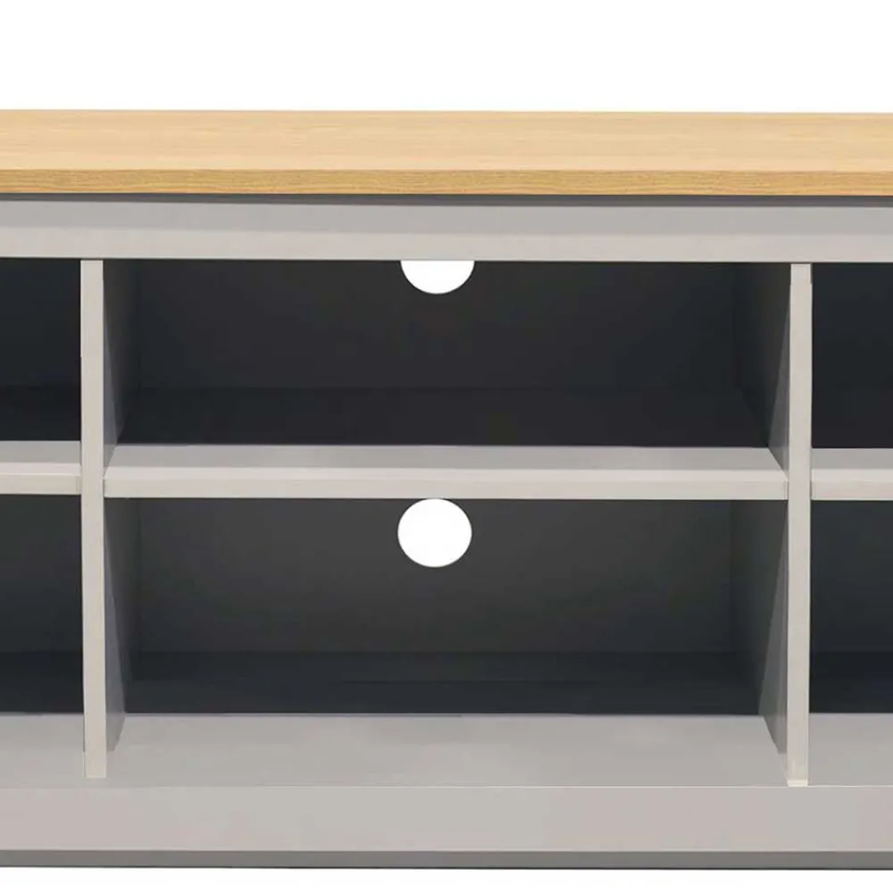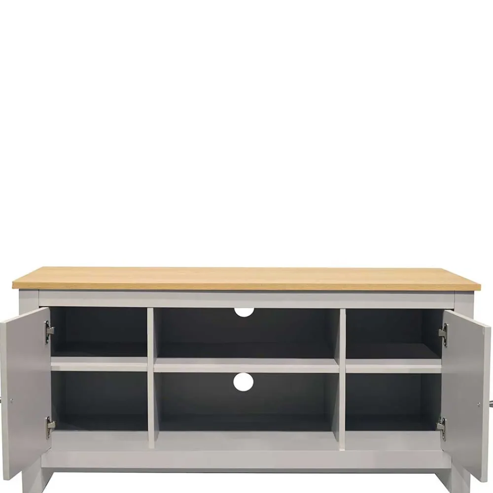 - Geschmackvolles TV Board in Grau und Eichefarben