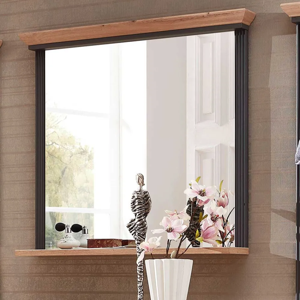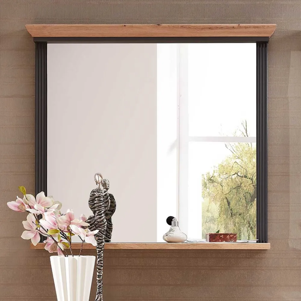 Der Rahmen unseres Spiegels ist aus MDF gefertigt, einem Material, das für seine Robustheit und Haltbarkeit bekannt ist. MDF steht für mitteldichte Faserplatte und bietet eine gleichmäßige Oberfläche, die sich hervorragend für die folierte Verarbeitung eignet. Die matte Anthrazitfolierung des Rahmens, kombiniert mit der Absetzung und Ablagefläche in Eichenholzoptik, unterstreicht den Landhauscharme und bringt ein Stück Natur in Ihr Heim. Die Absetzungen und Ablageflächen sind aus Spanplatte hergestellt, die sich durch ihre Festigkeit und Beständigkeit auszeichnet. Spanplatten sind zudem ökologisch vorteilhaft, da sie aus Holzresten hergestellt werden, was zur Nachhaltigkeit beiträgt.