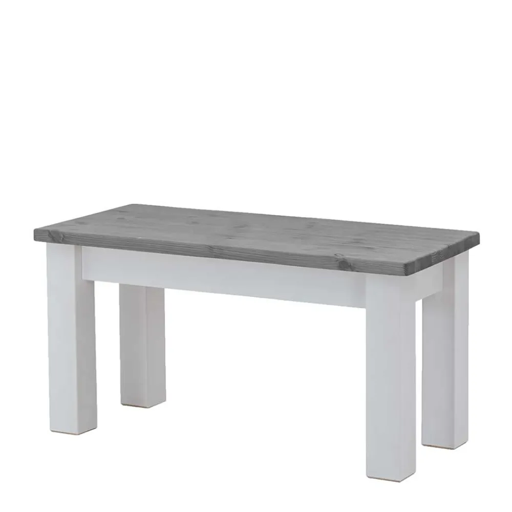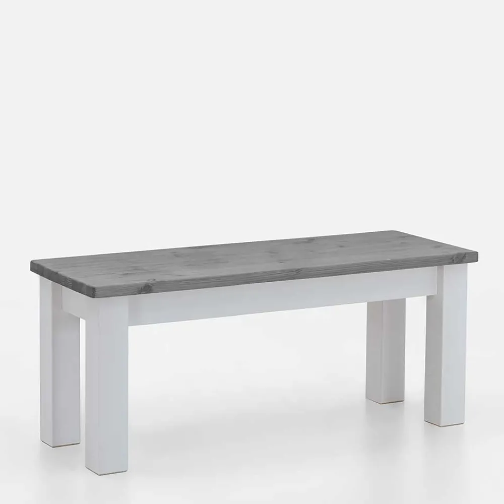 - Klasse Holzbank in Kiefer Grau und Weiß