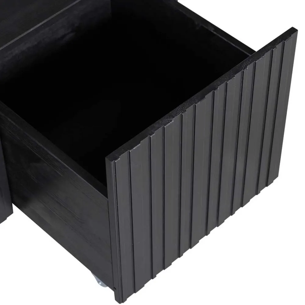 Das Lowboard „Gelvins“ setzt markante Akzente und überzeugt mit einer gelungenen Mischung aus Funktionalität und Design. Die tiefschwarze Kiefernholz-Optik verleiht dem Möbelstück eine ausdrucksstarke Präsenz, während die vertikalen Rillen auf der Front für eine besondere Dynamik sorgen. Ob als TV-Board im Wohnzimmer oder als stilvolle Stauraumlösung im Flur – dieses Möbelstück ist ein echter Hingucker und fügt sich perfekt in moderne sowie skandinavisch inspirierte Wohnkonzepte ein.