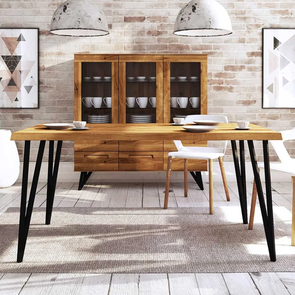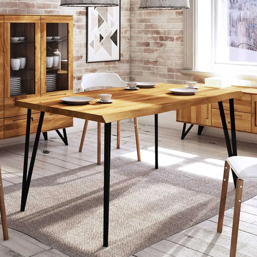 Zu den herausragenden Designmerkmalen des Wildeichetischs „Mandirov“ gehört seine stilvolle Anlehnung an den Industry und Loft Stil. Dieser Stil zeichnet sich durch die Verschmelzung von industriellen Elementen mit rohen, naturbelassenen Materialien aus. Das Ergebnis ist eine harmonische Kombination von urbanem Flair und naturverbundener Ästhetik. Besonders in modernen Wohnräumen sorgt dieser Stil für eine wohltuende Atmosphäre und ein individuelles Ambiente.