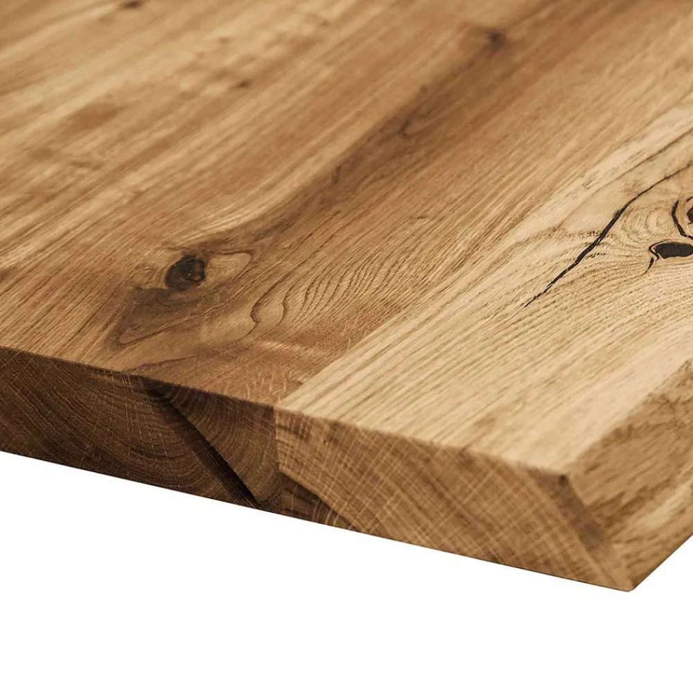 Jeder „Mandirov“ Tisch bietet authentische Baumkanten, direkt aus dem Stamm geschnitten. Durch diesen speziellen Zuschnitt variieren Farbverlauf und Form von Tisch zu Tisch – somit ist jedes Möbelstück ein echtes Unikat. Zusätzlich sorgt die natürlich geölte Holzoberfläche nicht nur für einen natürlichen Schutz, sondern betont auch die charakteristische Maserung der Wildeiche. Die erstklassige Stabverleimung gewährleistet dabei eine besonders stabile und langlebige Tischplatte.