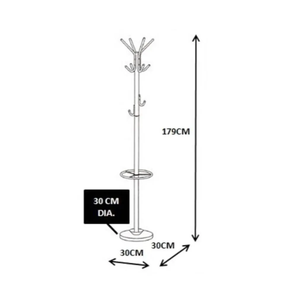 Mit einer Breite von 30 cm, einer Höhe von 179 cm und einer Tiefe von 30 cm bietet dieser Garderobenständer großzügigen Stauraum auf kleiner Fläche.