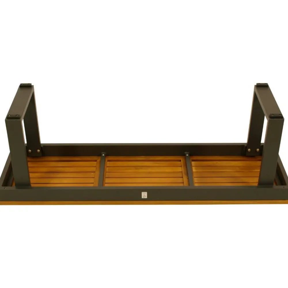 Die Sitzfläche besteht aus massivem Akazienholz mit geölter Oberfläche, die die natürliche Maserung und den warmen Farbton des Holzes optimal zur Geltung bringt. Das stabile Bügelgestell aus pulverbeschichtetem Aluminium in Anthrazit sorgt für sicheren Stand und witterungsbeständige Stabilität. Um die Lebensdauer des Holzes zu erhalten, sollte die Bank bei anhaltender Nässe oder Frost geschützt gelagert werden.