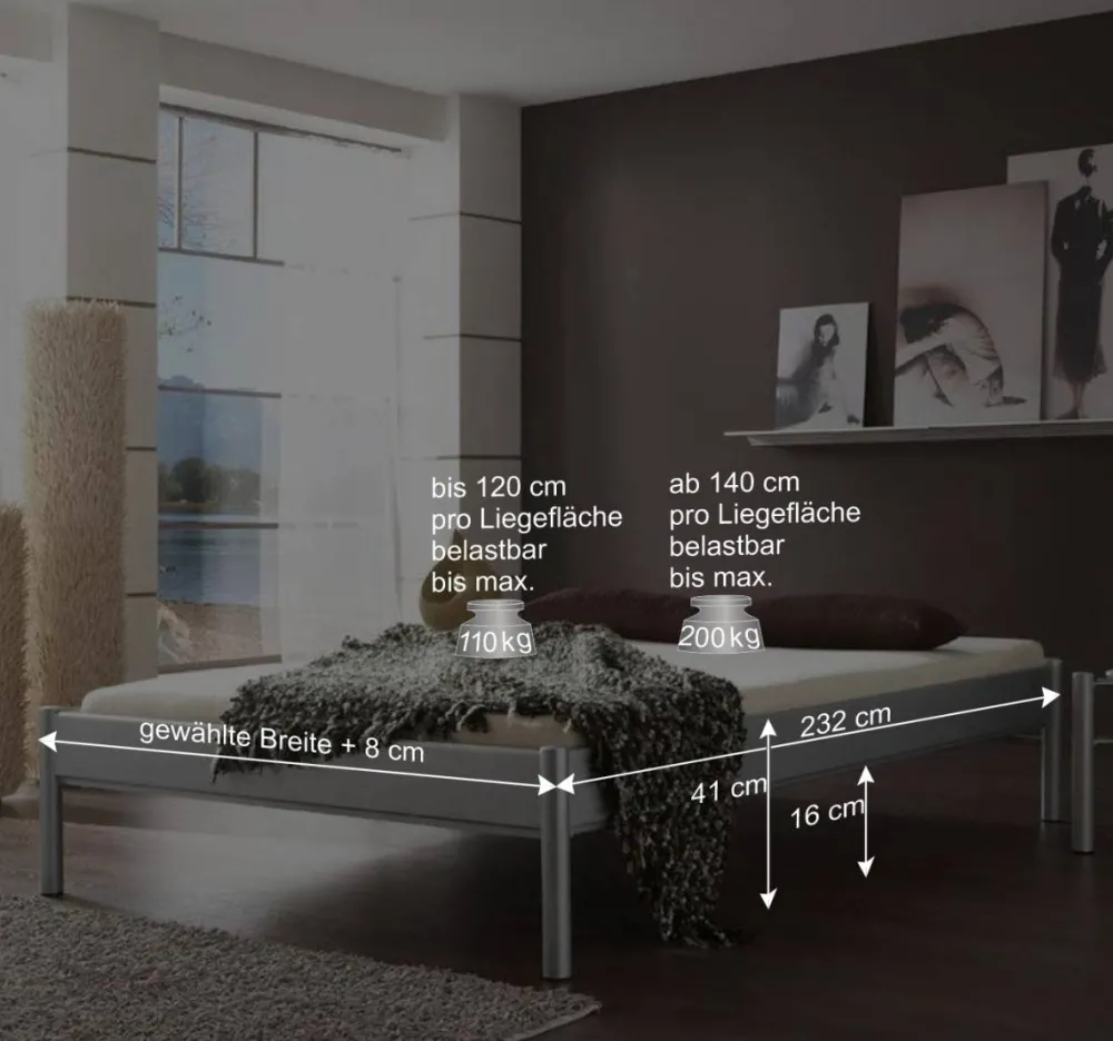 Matratze und Lattenrost sind nicht im Lieferumfang enthalten, wodurch Sie die Möglichkeit haben, diese Elemente ganz nach Ihren individuellen Vorlieben und Bedürfnissen auszuwählen. In unserem Online-Shop bieten wir Ihnen eine Vielzahl von hochwertigen Matratzen und Lattenrosten, die perfekt zu Ihrem neuen Metallbett passen.
