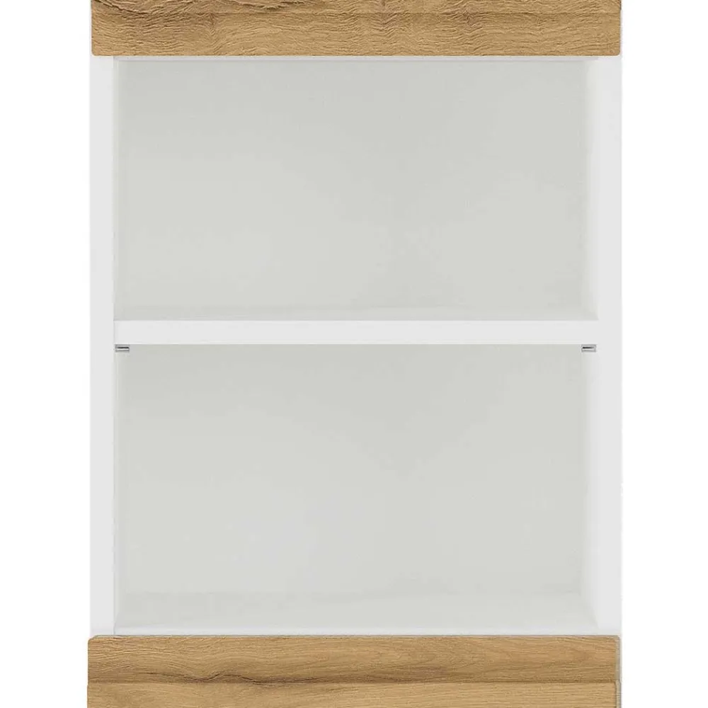 - Weiße Oberflächen melaminbeschichtet, Holzoptik Wildeiche foliert, Kanten tiefgezogen