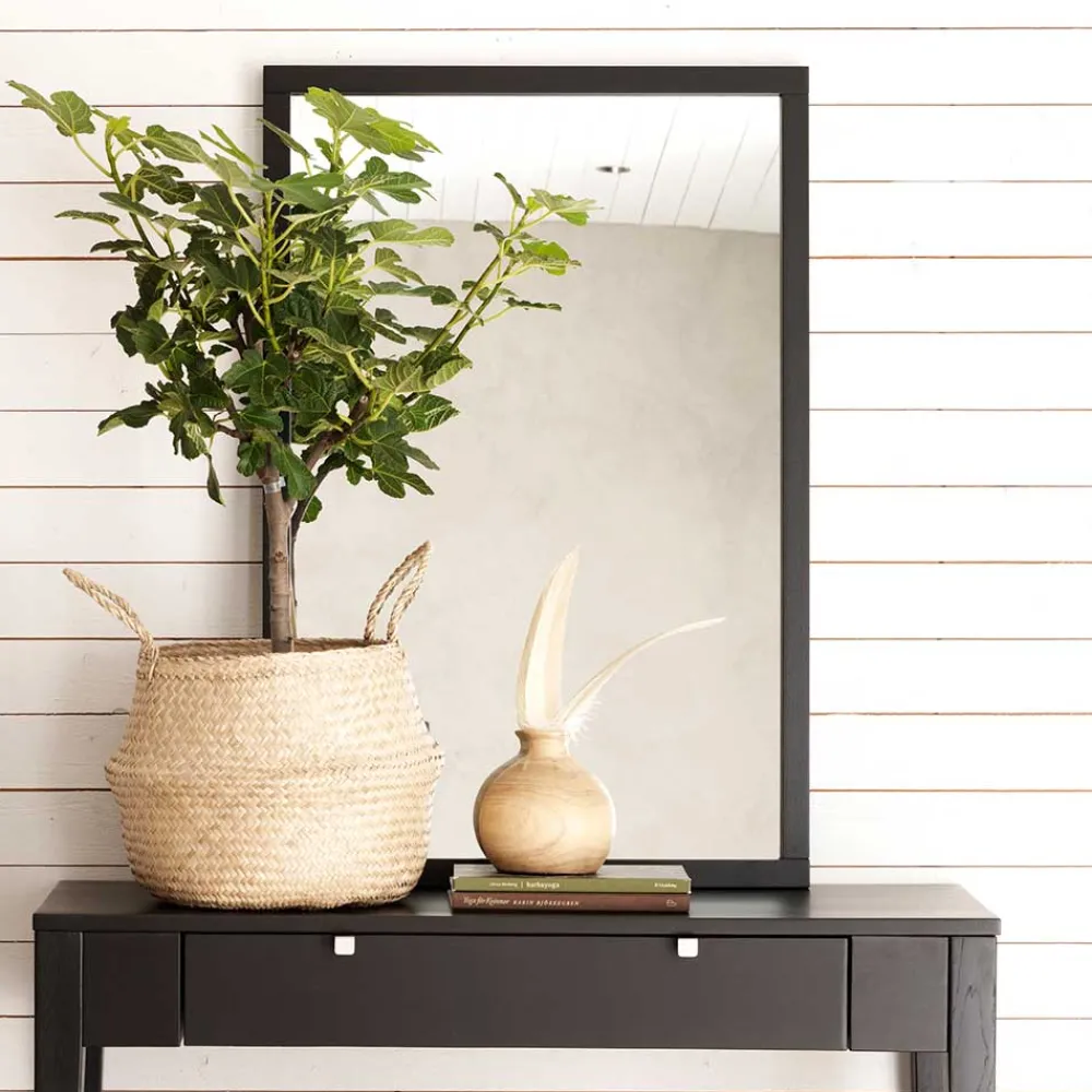 Ein echtholzfurnierter Rahmen aus MDF bildet das solide Fundament dieses stilvollen Spiegels. MDF, also mitteldichte Faserplatte, vereint Formstabilität mit einem glatten, gleichmäßigen Finish – ideal für hochwertige Lackierungen und Furniere. Es ist deutlich resistenter gegen Verziehen als Massivholz, wodurch es perfekt für langlebige Möbelkonstruktionen geeignet ist. Die sorgfältige Lackierung unterstreicht die hochwertige Verarbeitung und schützt die Oberfläche zusätzlich vor Kratzern und Feuchtigkeit.