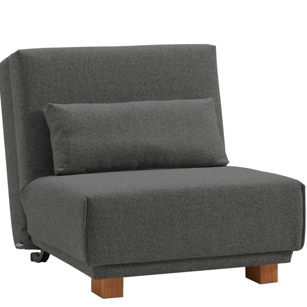 - Komfortabler Falsessel in Dunkelgrau und Eichefarben