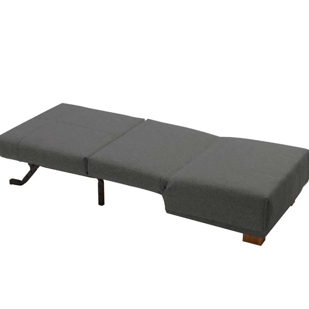 Das tragende Metalluntergestell garantiert einen sicheren Stand, während die vorderen Blockfüße aus massivem Eichenholz dem Sessel eine warme, natürliche Note verleihen. Die hinteren Metallfüße sorgen für zusätzliche Stabilität. Die durchdachte Faltfunktion mit zwei zusätzlichen Stützen macht den Umbau zum Schlafplatz besonders einfach und sorgt für eine gleichmäßige Liegefläche.