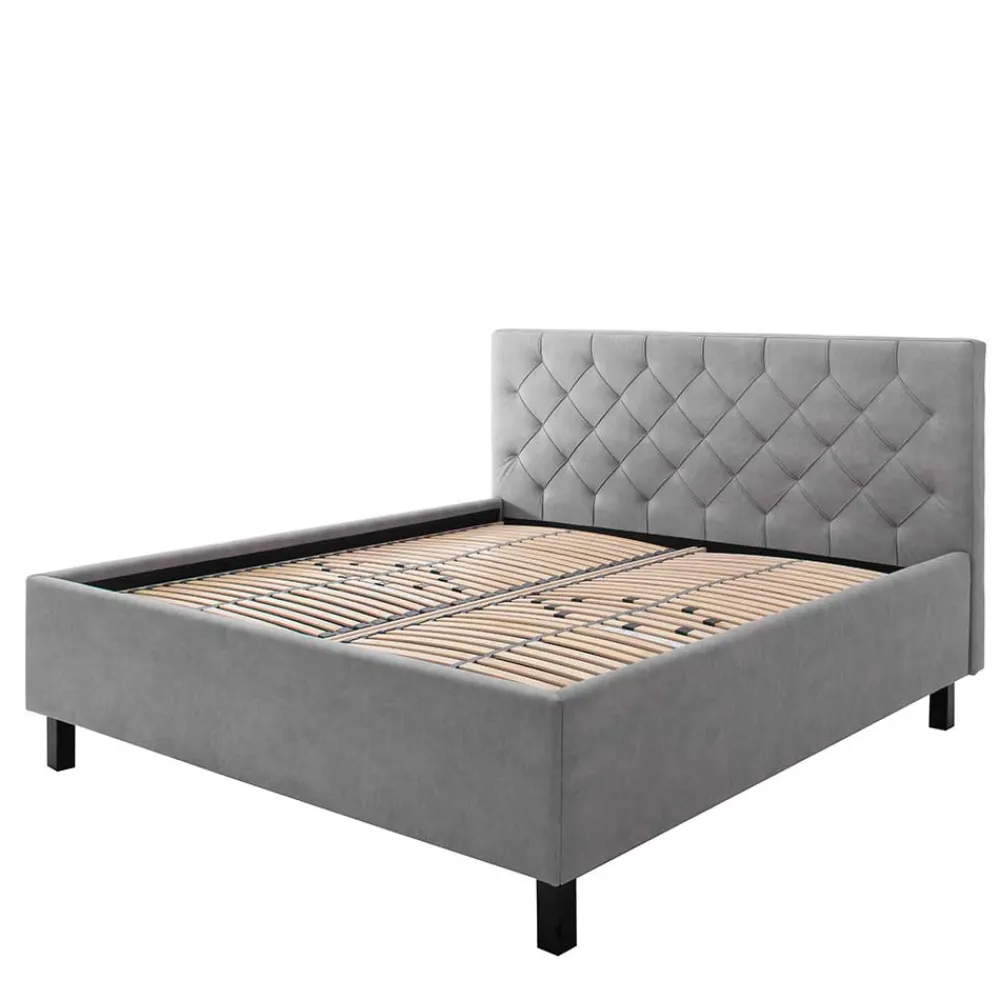 - Klasse Polsterbett in Hellgrau und Schwarz