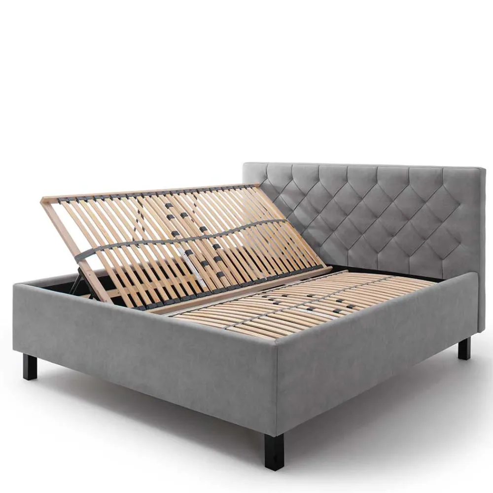 - Belüftete Bettkästen als idealer Stauraum für Bettwäsche und mehr, Lattenrost hochklappbar