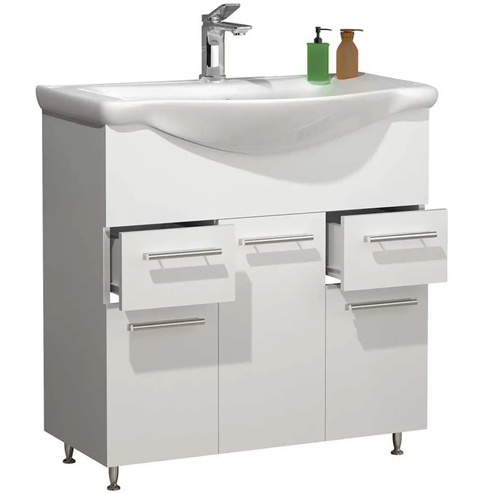 - Inklusive Keramik Waschbecken in gewölbter Form für mehr Komfort