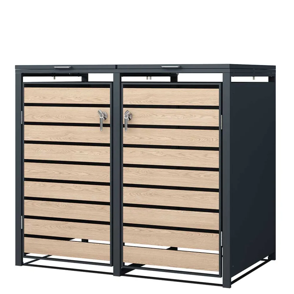 - Praktische Mülltonnenbox in Anthrazit und Holzoptik Naturfarben