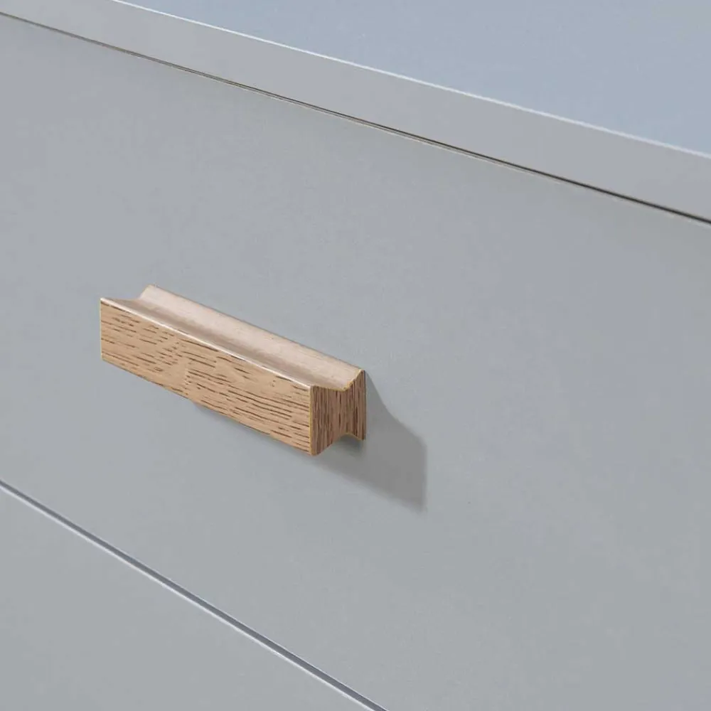 Gefertigt aus strapazierfähigem Holzwerkstoff, bietet die „Caldaro“ langlebige folierte Oberflächen in Grau und Eiche Holzoptik. Das stabile Vierfußgestell mit dekorativer Blende in Eiche unterstreicht die durchdachte Gestaltung, während die dezente Griffleisten in Holzoptik das Design elegant abrunden.