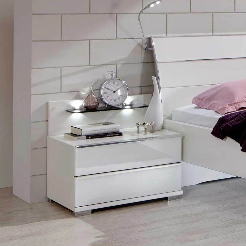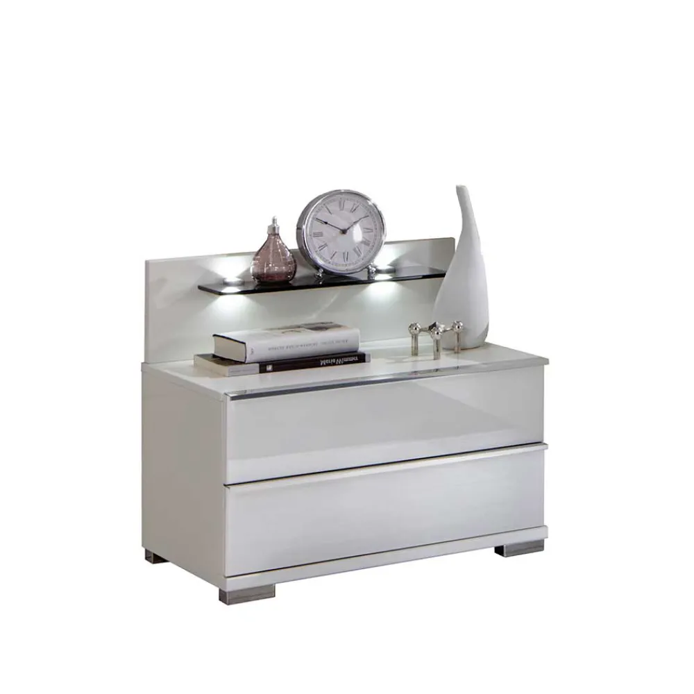 Wohnen Nachttischkommode Donpiave in Weiß Glas beschichtet