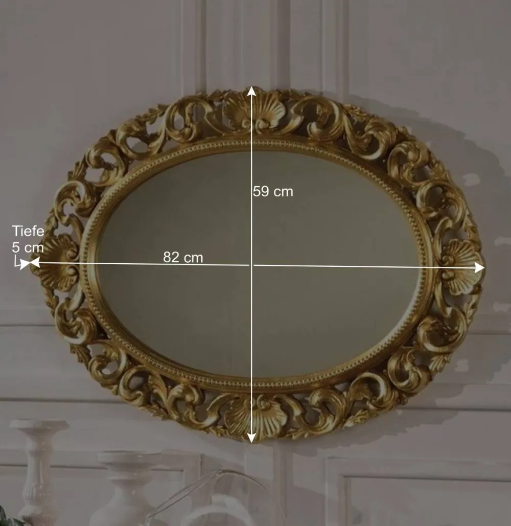 Mit dem ovalen Spiegel Carlenna aus dem Wohnen.de Shop-Sortiment setzen Sie pompöse Akzente in Ihren Räumlichkeiten. Der hochwertige Wandspiegel stammt aus italienischer Qualitätsproduktion und begeistert durch ein opulentes Barock Design. Damit fügt er sich perfekt in jedes klassisch-elegante Ambiente ein, passt aber auch sehr gut als Stilbrecher in nahezu jedes andere Einrichtungskonzept.