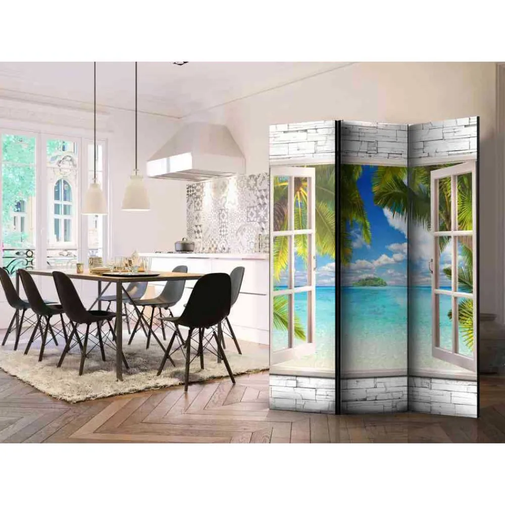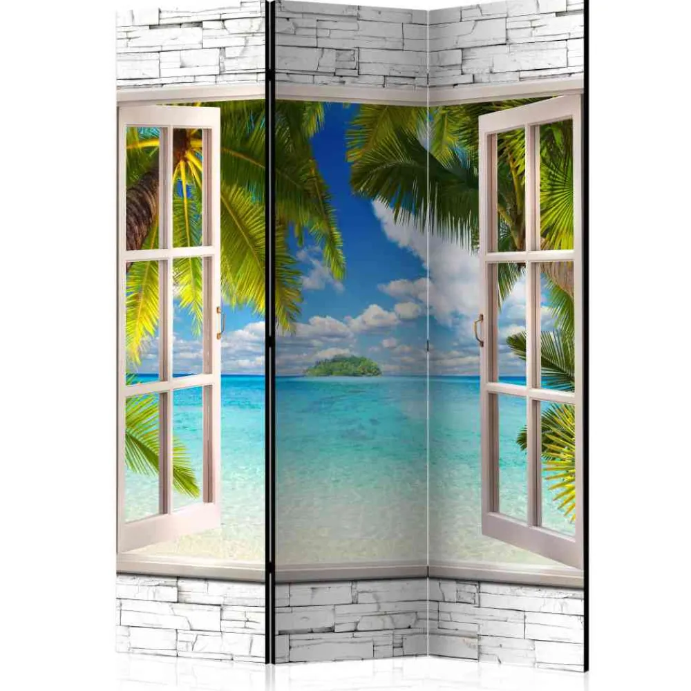 - Wunderschönes Motiv mit geöffnetem Fenster und Meerblick in 3D-Optik