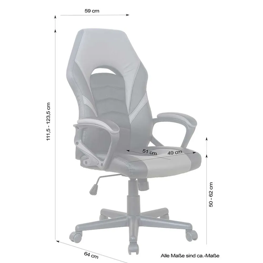 Mit einer Gesamthöhe von 111,5-123,5 cm, stufenlos verstellbar dank Gasdruckfeder, passt sich der Stuhl individuell Ihren Bedürfnissen an. Die gemütlich gepolsterten Armlehnen und die ergonomisch gestaltete Racer Rückenlehne mit Lordosestütze bieten optimalen Komfort und Unterstützung für Ihren Rücken. Die Wippmechanik mit Härtegradeinstellung ermöglicht Ihnen zusätzlich eine individuelle Anpassung.