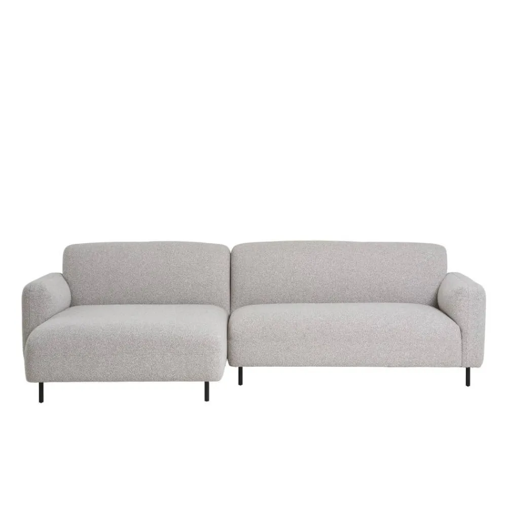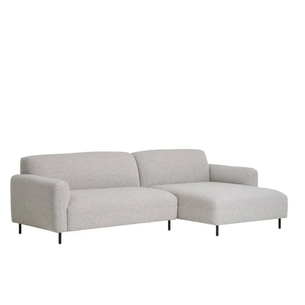 Das Untergestell aus hochwertigem Holzwerkstoff sorgt für Stabilität, während die bequeme Polyurethanschaumpolsterung mit einer Dichte von 35–39 kg/m³ für angenehmen Sitzkomfort steht. Der Bouclé-Bezug aus 100 % Polyester ist nicht nur besonders pflegeleicht, sondern auch strapazierfähig – mit einer Scheuertourenfestigkeit von 25.000 nach Martindale bestens für den Alltag gerüstet.
