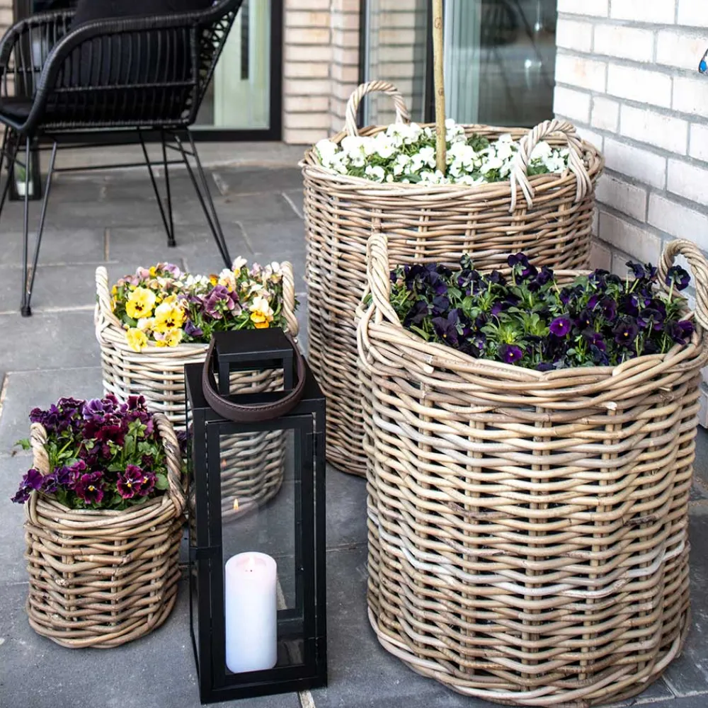 Das Set besteht aus vier Körben in folgenden Maßen: 50x58x50 cm, 40x48x40 cm, 30x38x30 cm und 20x28x20 cm (BxHxT). Diese unterschiedlichen Größen ermöglichen Ihnen, die Körbe vielseitig in Ihrem Zuhause einzusetzen – ob als Aufbewahrungslösungen, zur Dekoration oder als Pflanzengefäße für Innen- und Außenbereiche.