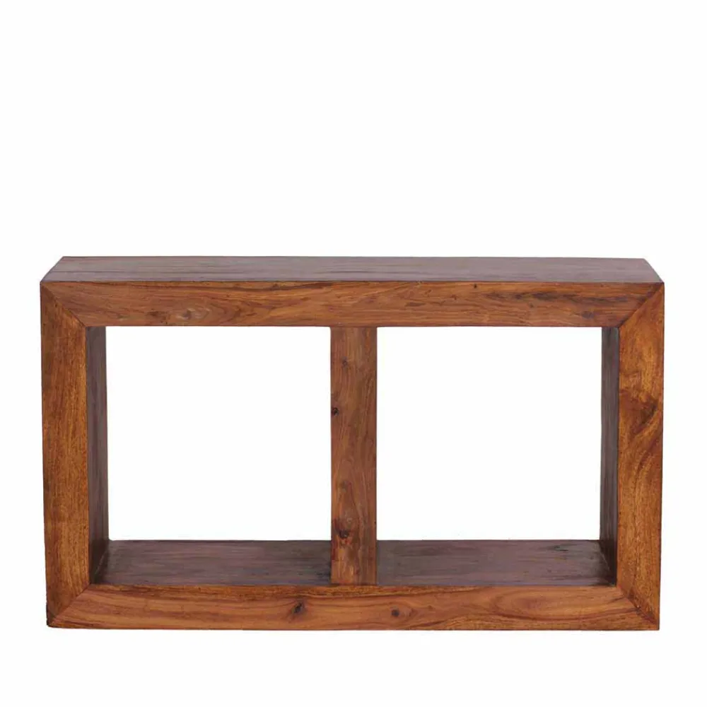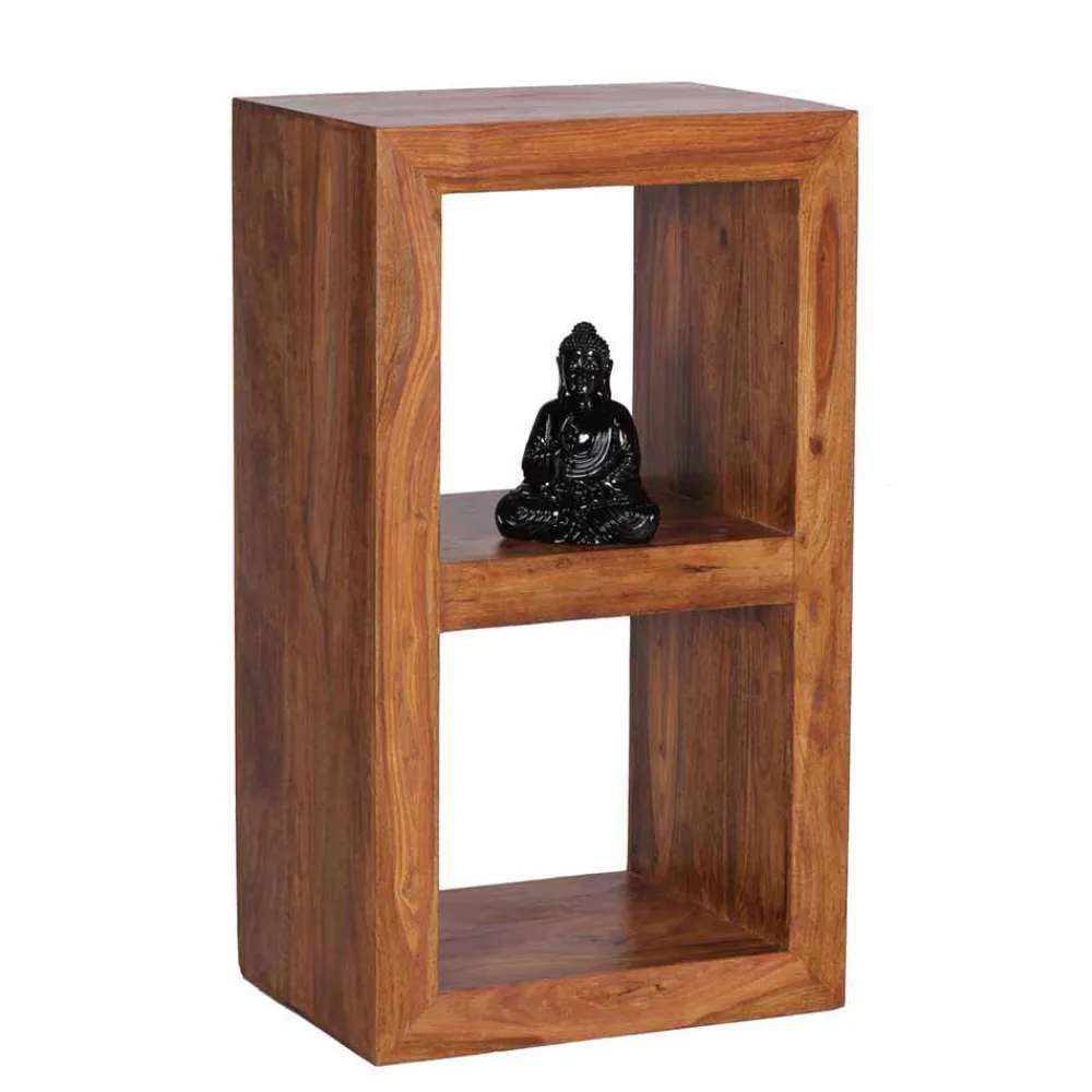 Mit kompakten Maßen von 50 cm Breite, 88 cm Höhe und 35 cm Tiefe lässt sich das Regal flexibel einsetzen – ob als platzsparende Lösung für kleinere Räume oder als stilvoller Akzent in großzügigen Wohnbereichen. Zwei offene Fächer mit Innenmaßen von jeweils 37 cm Breite, 34 cm Höhe und 35 cm Tiefe bieten ausreichend Stauraum für Bücher, Dekoartikel, Körbe oder Alltagsgegenstände. Eine beeindruckende Holzstärke von 6 cm verleiht dem Möbelstück zusätzliche Stabilität und unterstreicht den hochwertigen Eindruck.