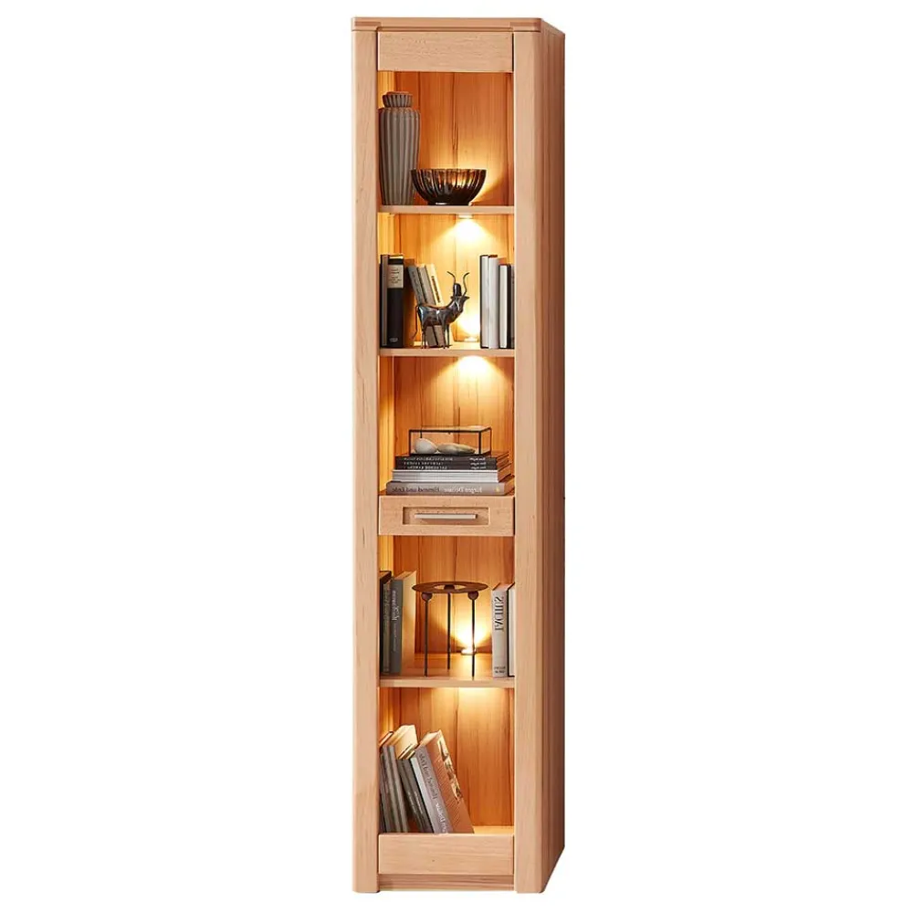 Sie suchen nach einem Möbelstück, das nicht nur Ihren Wohnraum optisch aufwertet, sondern auch durch seine praktische Ausgestaltung überzeugt? Dann ist das Regal „Amyonta“ genau das Richtige für Sie. Gefertigt aus hochwertiger Kernbuche in naturbelassener Optik, vereint dieses Regal wohnliche Gemütlichkeit mit modernem Design. Die dezent abgerundeten Kanten verleihen ihm eine zeitlose Eleganz, während die überzeugende Qualität in Material und Verarbeitung für Langlebigkeit und Stabilität sorgt.