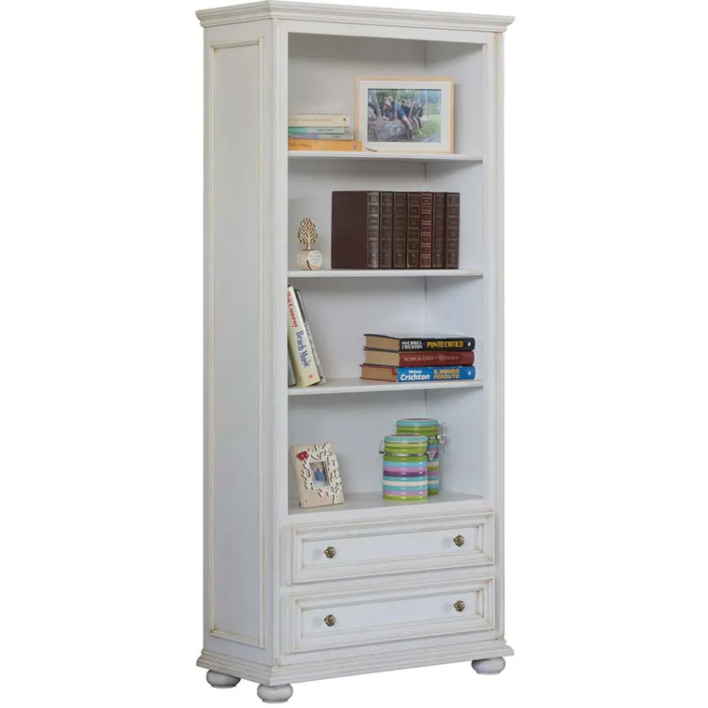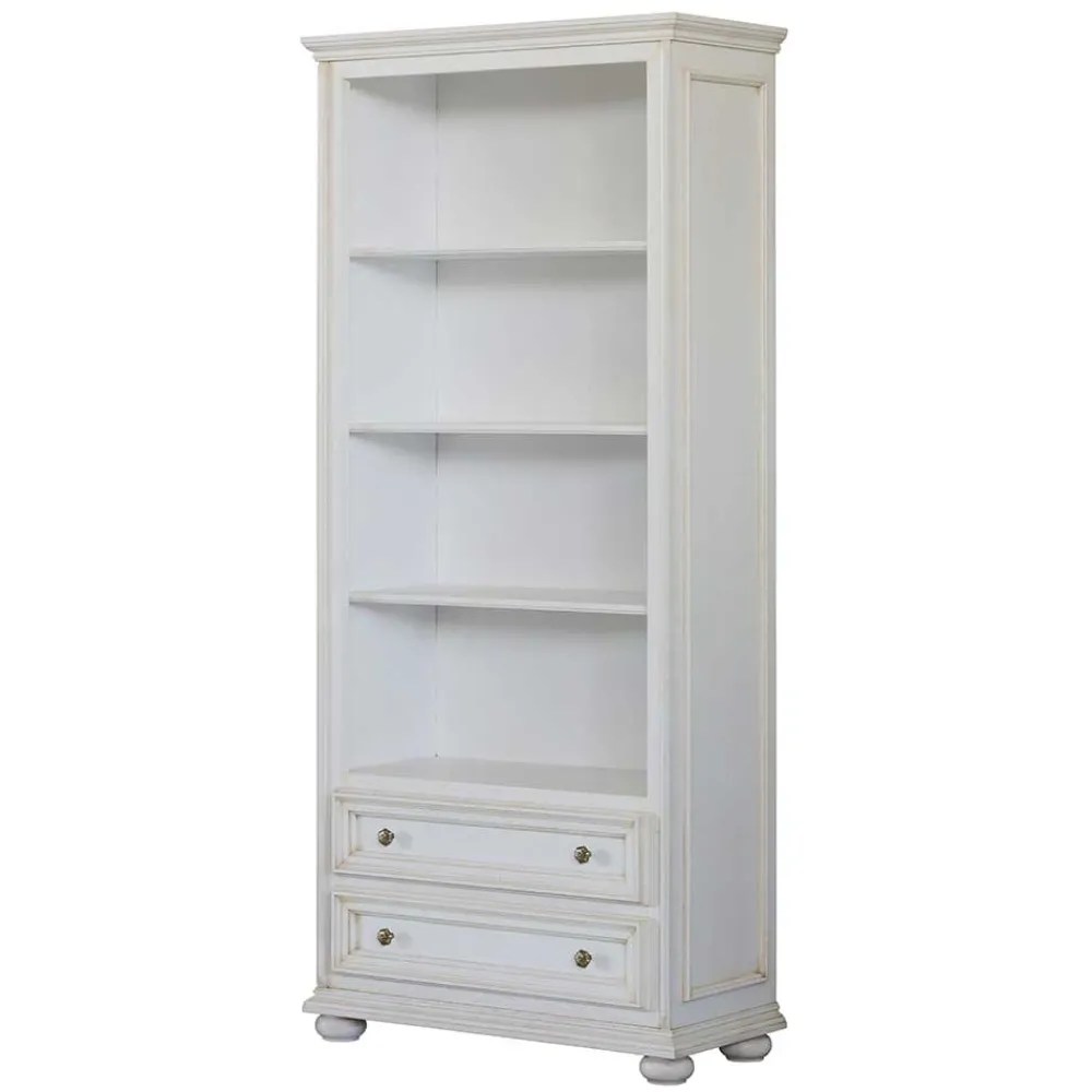 - Elegant präsentiert sich dieses Bücherregal im klassischen Stil in Antikweiß