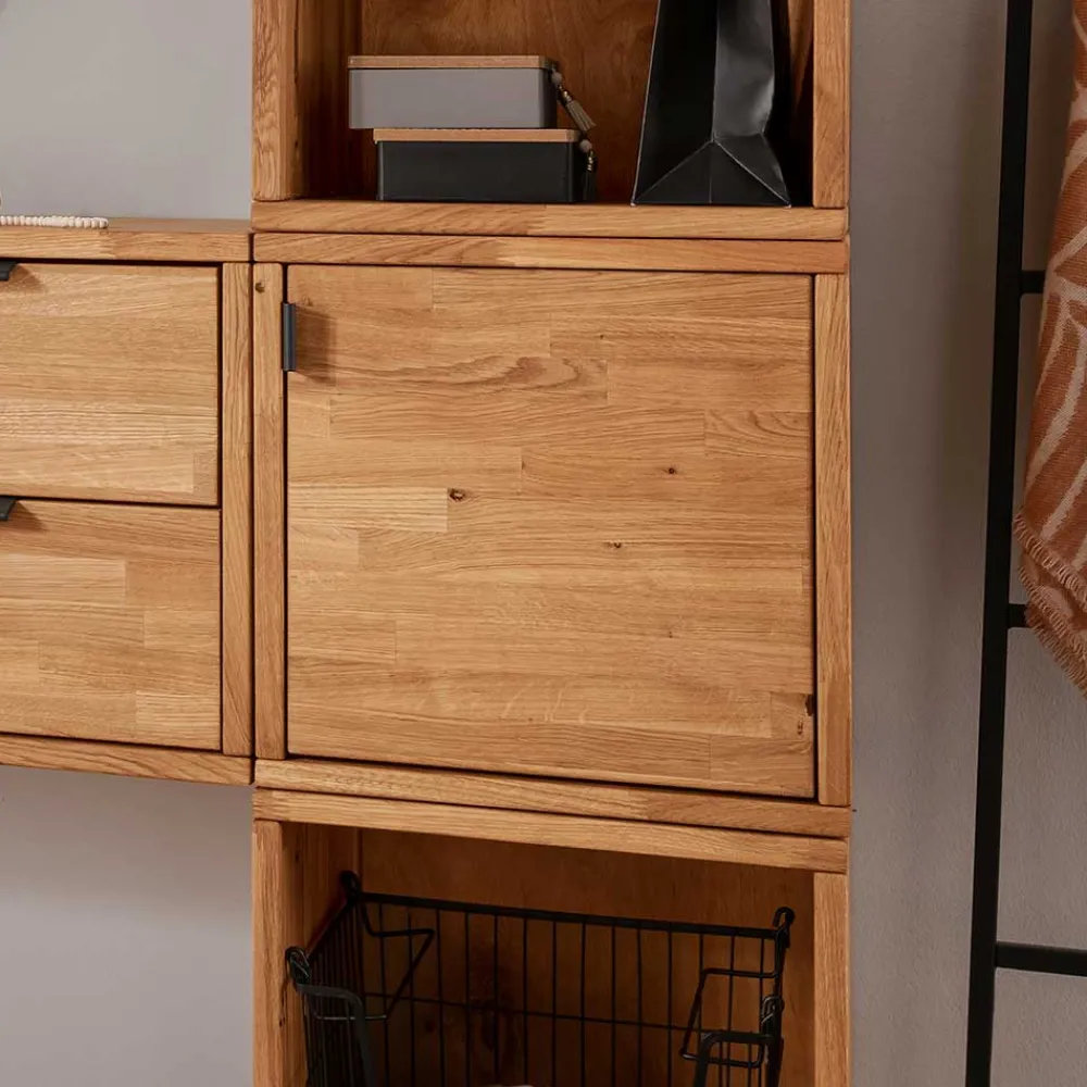 Entdecken Sie die pure Eleganz der Natur mit unserem Regalwürfel „Iljona“. Hergestellt aus hochwertiger Wildeiche, punktet dieses Möbelstück mit einer parkettverleimten Struktur, die Stabilität und Langlebigkeit garantiert. Die natürlich geölte Oberfläche unterstreicht die lebhafte Holzmaserung und verleiht jedem Raum eine warme, einladende Atmosphäre. Mit einer Materialstärke von ca. 2 cm steht „Iljona“ für Qualität, die Sie sehen und fühlen können.