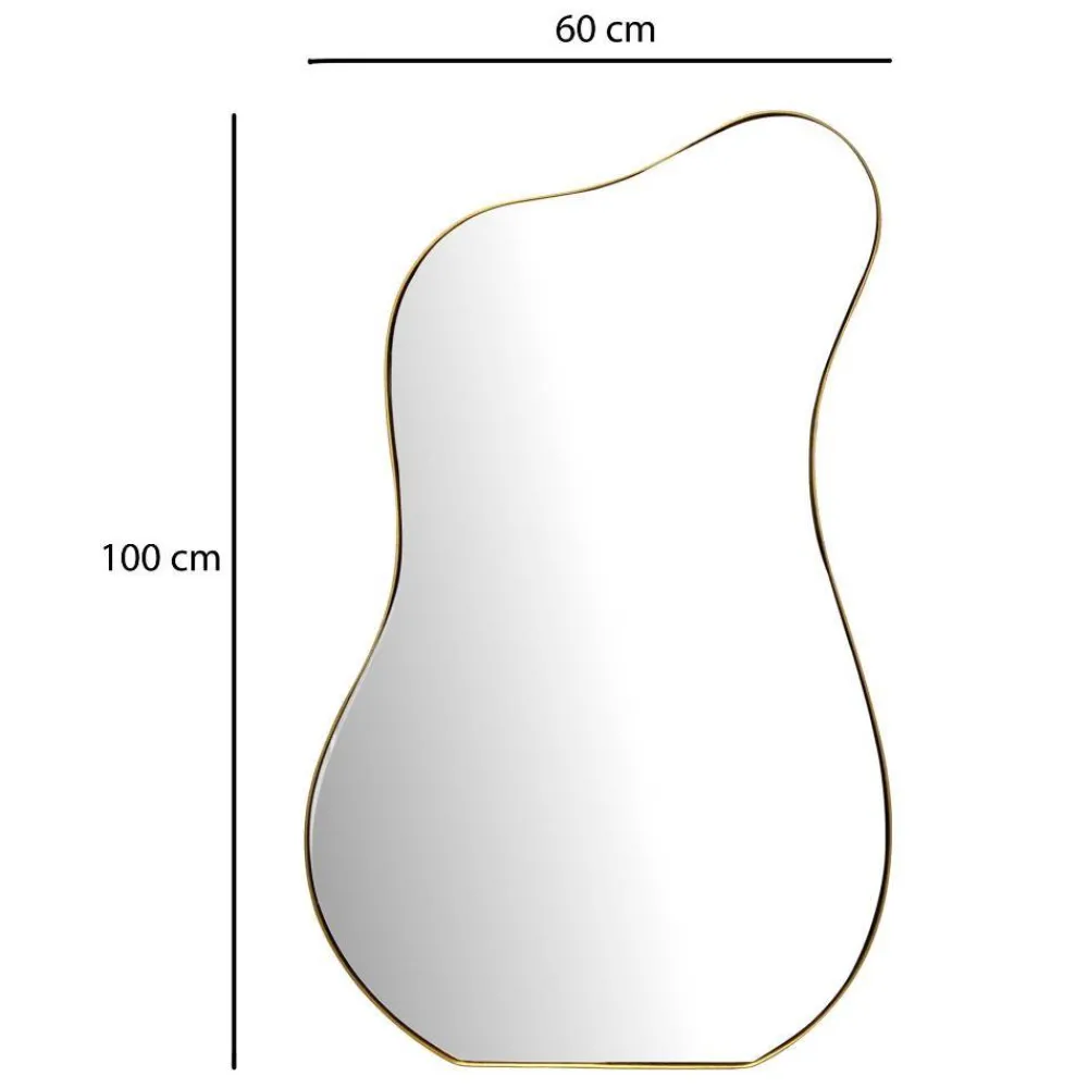 Der Wandspiegel „Curedo“ ist ein echtes Meisterwerk, das in keinem Raum fehlen sollte. Mit seinem goldenen Metallrahmen und der harmonisch organischen Form zieht er alle Blicke auf sich und wird zum echten Highlight in Ihrem Zuhause. Ob im Flur, im Wohnzimmer oder im Schlafzimmer – dieser Spiegel verleiht jedem Raum eine besondere Note und sorgt für eine stilvolle Atmosphäre. Die Wandmontage des Spiegels lässt sich schnell und unkompliziert realisieren, sodass Sie ihn direkt nach der Lieferung genießen können.