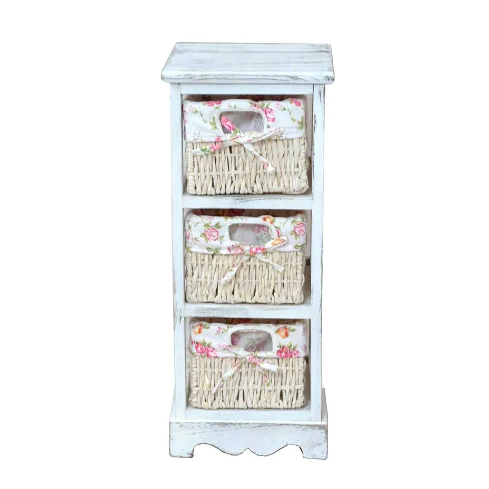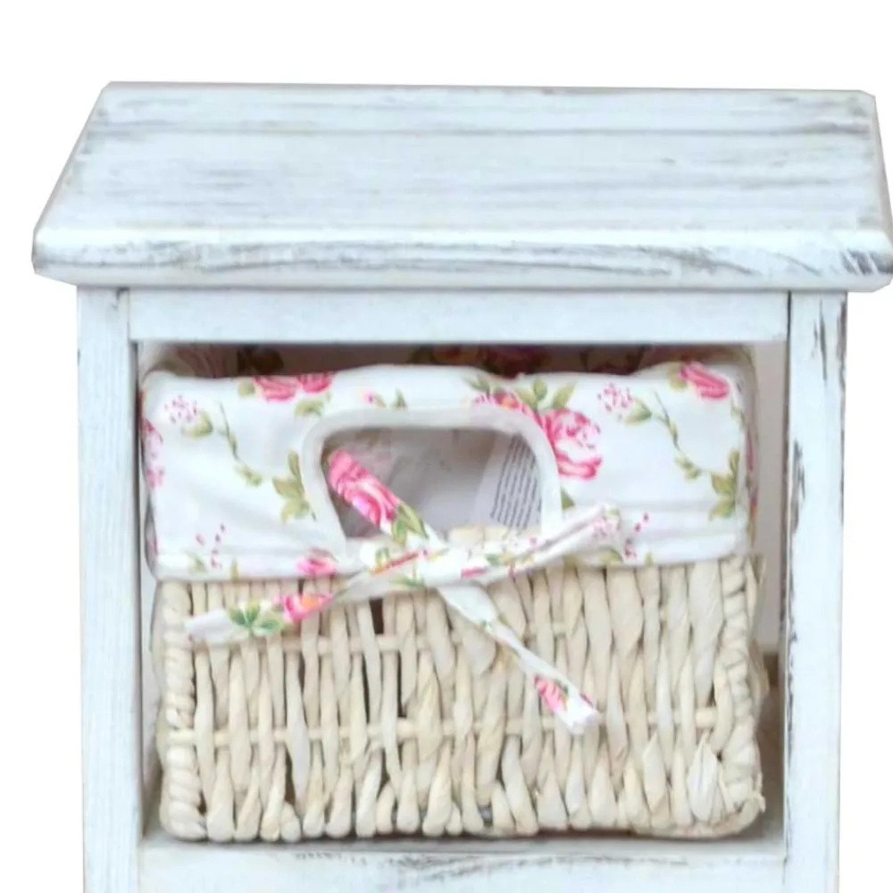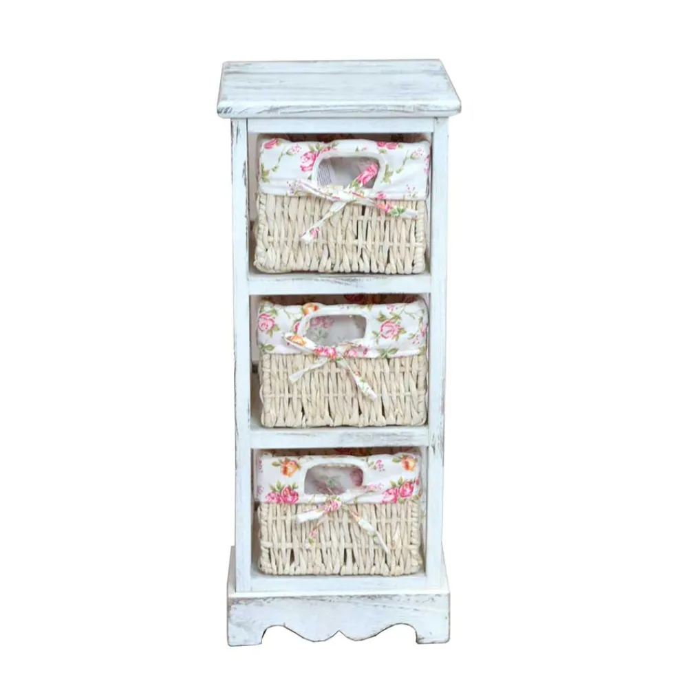 - Drei Körbe aus handgearbeitetem Maisgeflecht, nicht sichtbarem Eisenrahmen zur Stabilisierung, Stoffeinsatz im Rosendesign aus 80% Baumwolle und 20% Polyester