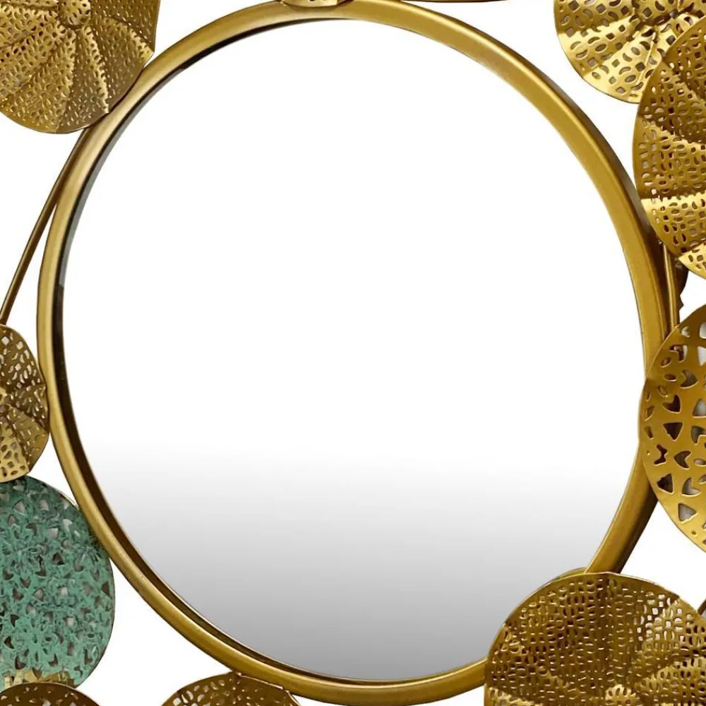 Mit seinem ausgefallenen Design und der einzigartigen Farbgebung in Altgold und Grün zieht der runde Spiegel „Biljana“ alle Blicke auf sich. Perfekt für ein Ambiente im Boho Style fügt er sich mühelos in verschiedene Räume ein und verleiht Ihrem Wohnbereich eine charmante und dekorative Note. Seine künstlerische Gestaltung macht ihn zu einem unverwechselbaren Hingucker, der sowohl Funktionalität als auch Ästhetik bietet.