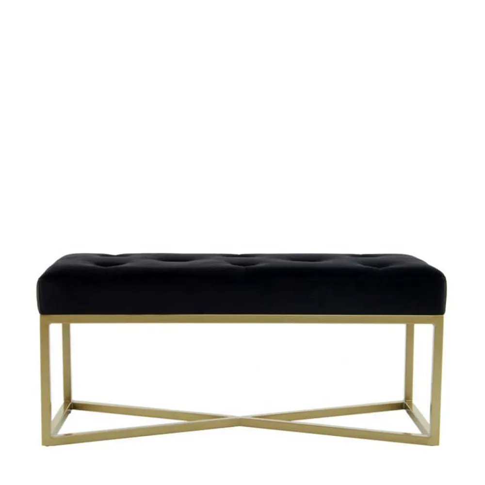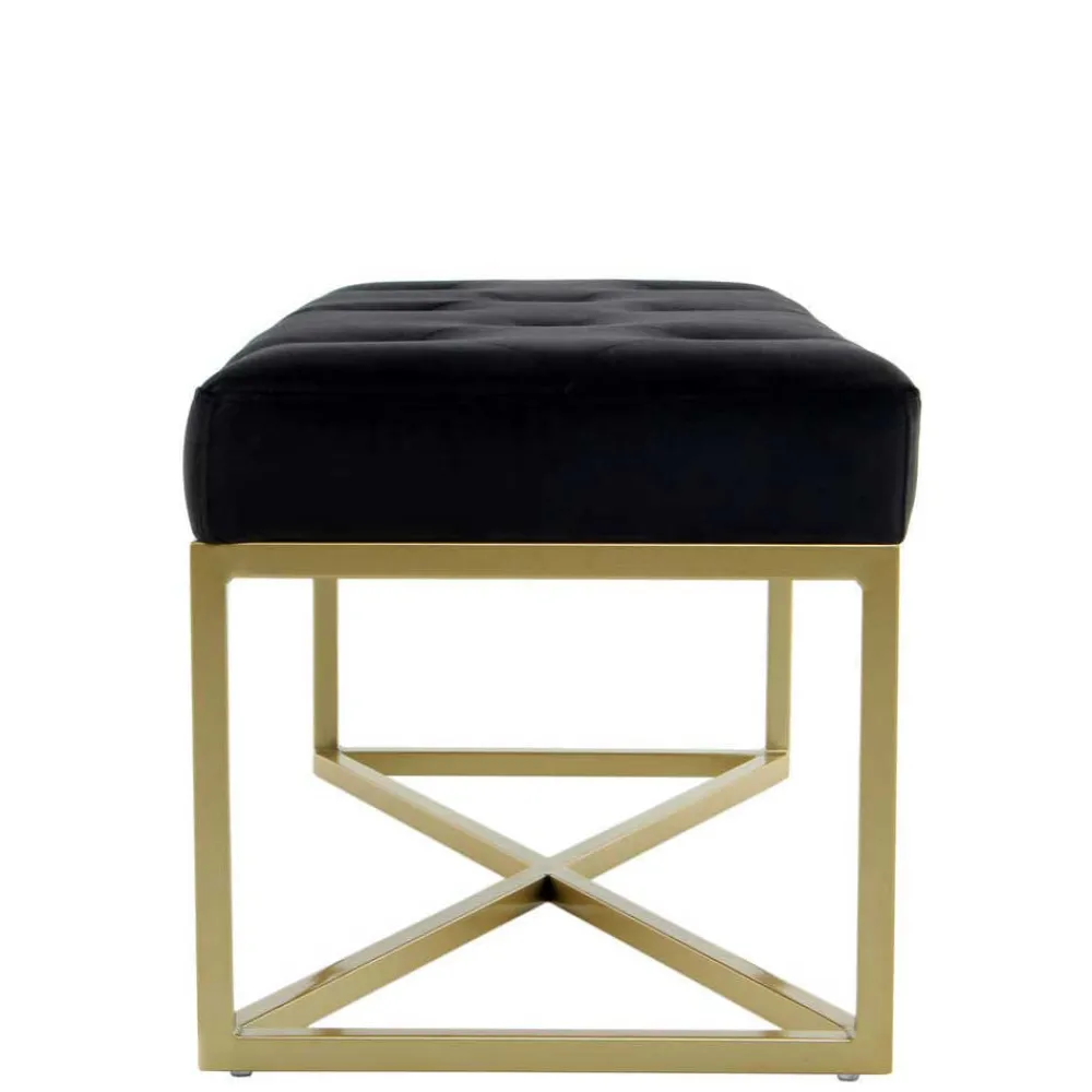 Mit der Samtbank „Carantec“ setzen Sie ein stilvolles Statement in Ihrem Wohnraum. Das Zusammenspiel aus tiefschwarzem Samt und einem glänzend goldfarbenen Metallgestell verleiht diesem Möbelstück einen Hauch von Exklusivität. Ob als Sitzgelegenheit im Schlafzimmer, als stilvolle Ergänzung im Eingangsbereich oder als Akzent im Wohnraum – „Carantec“ überzeugt durch ihre Vielseitigkeit und ansprechende Optik.